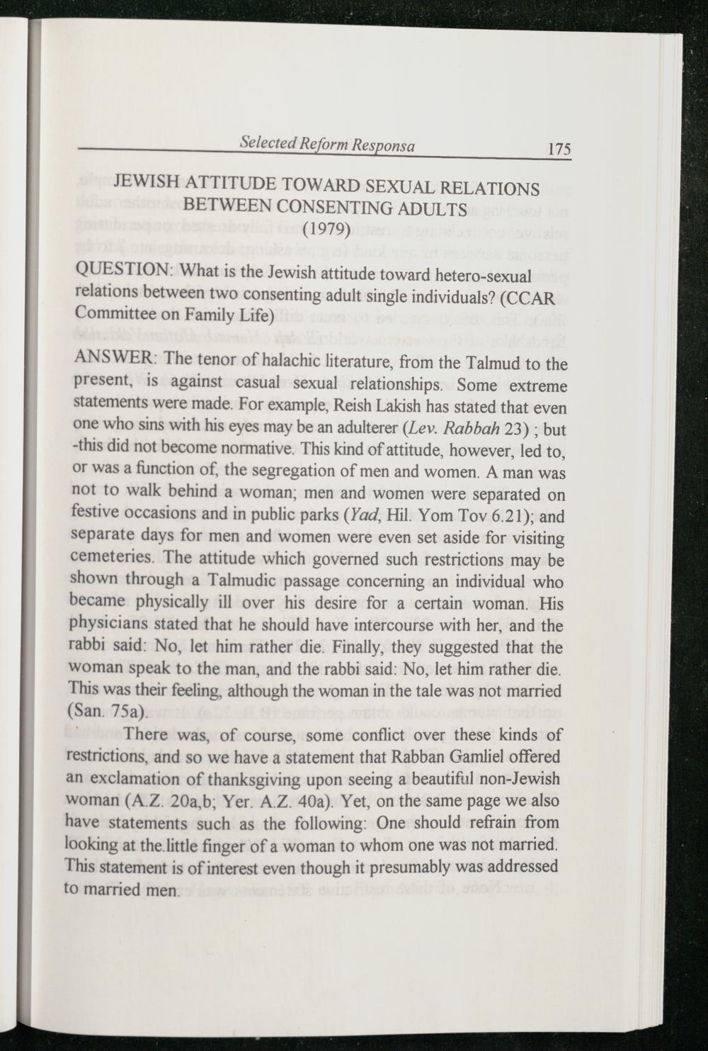 JEWISH ATTITUDE TOWARD SEXUAL RELATIONS BETWEEN CONSENTING ADULTS (1979)
