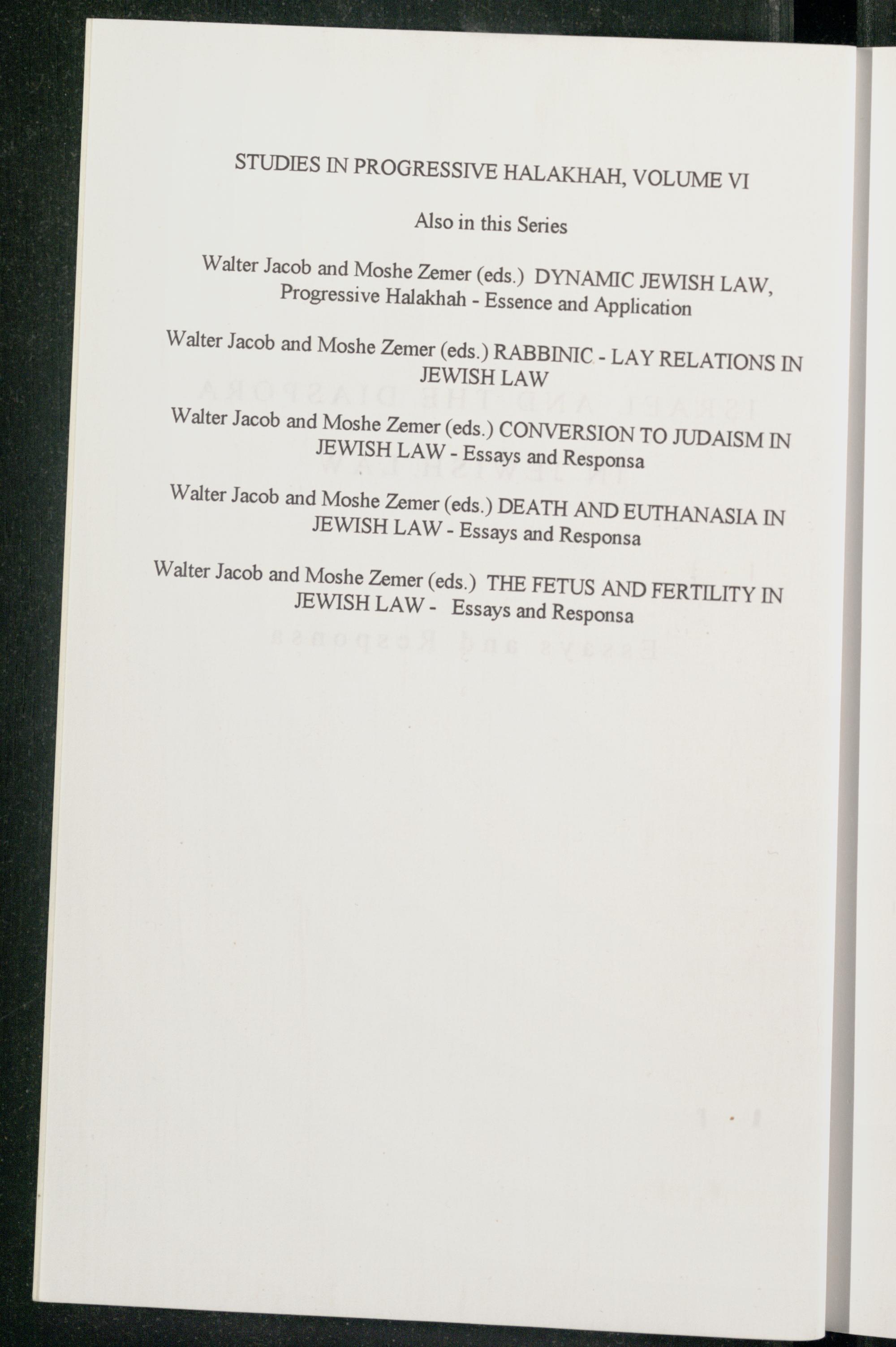 STUDIES IN PROGRESSIVE HALAKHAH, VOLUME VI Also in this Series