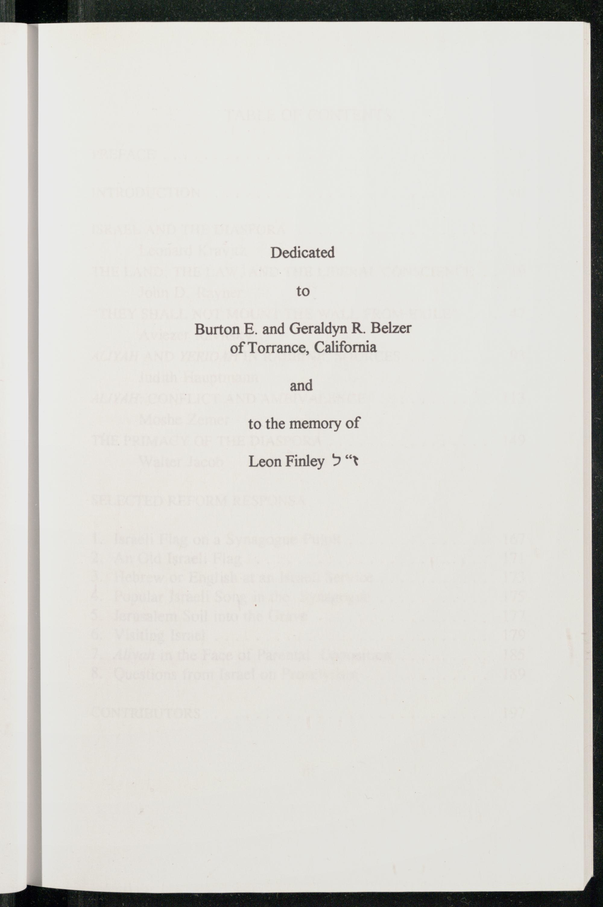 Dedicated to Burton E. and Geraldyn R. Belzer of Torrance , California and to the memory of Leon Finley 2“t
