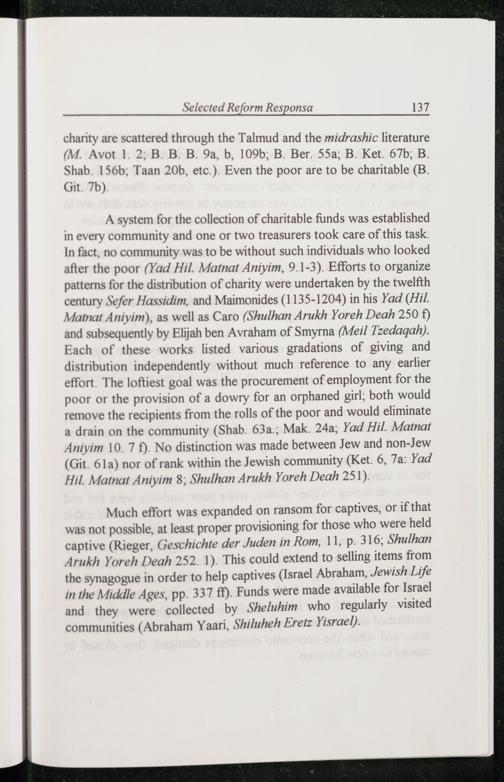 Much effort was expanded on ransom for captives, or if that was not possible, at least proper provisioning for those who were held captive(Rieger, Geschichte der Juden in Rom, 11, p. 316; Shulhan Arukh Yoreh Deah 252. 1). This could extend to selling items from the synagogue in order to help captives(Israel Abraham, Jewish Life in the Middle Ages, pp. 337 ff). Funds were made available for Israel and they were collected by Sheluhim who regularly visited communities(Abraham Yaari, Shiluheh Eretz Yisrael).