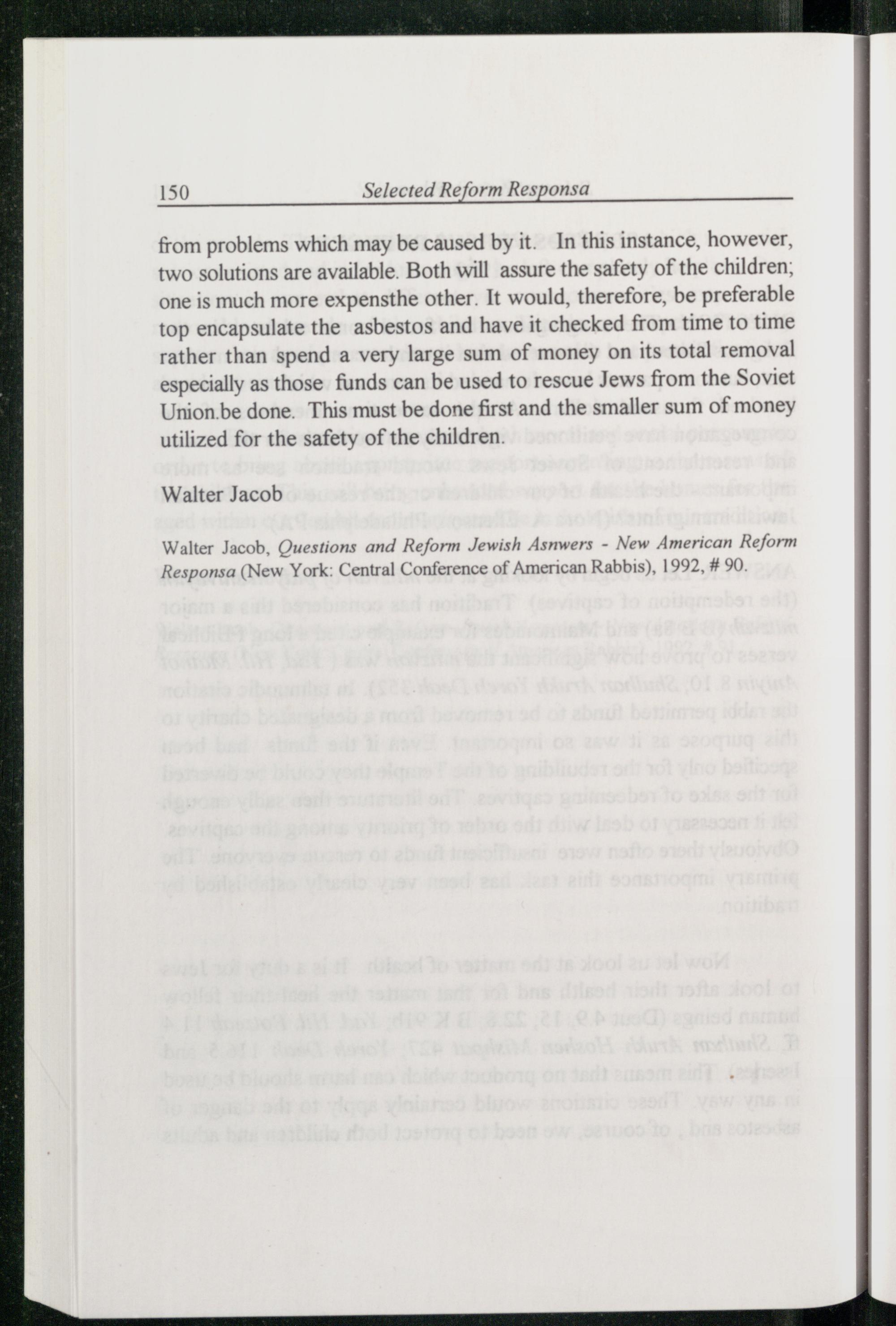 from problems which may be caused by it. In this instance, however, two solutions are available. Both will assure the safety of the children; one is much more expensthe other. It would, therefore, be preferable top encapsulate the asbestos and have it checked from time to time rather than spend a very large sum of money on its total removal especially as those funds can be used to rescue Jews from the Soviet Union.be done. This must be done first and the smaller sum of money utilized for the safety of the children.