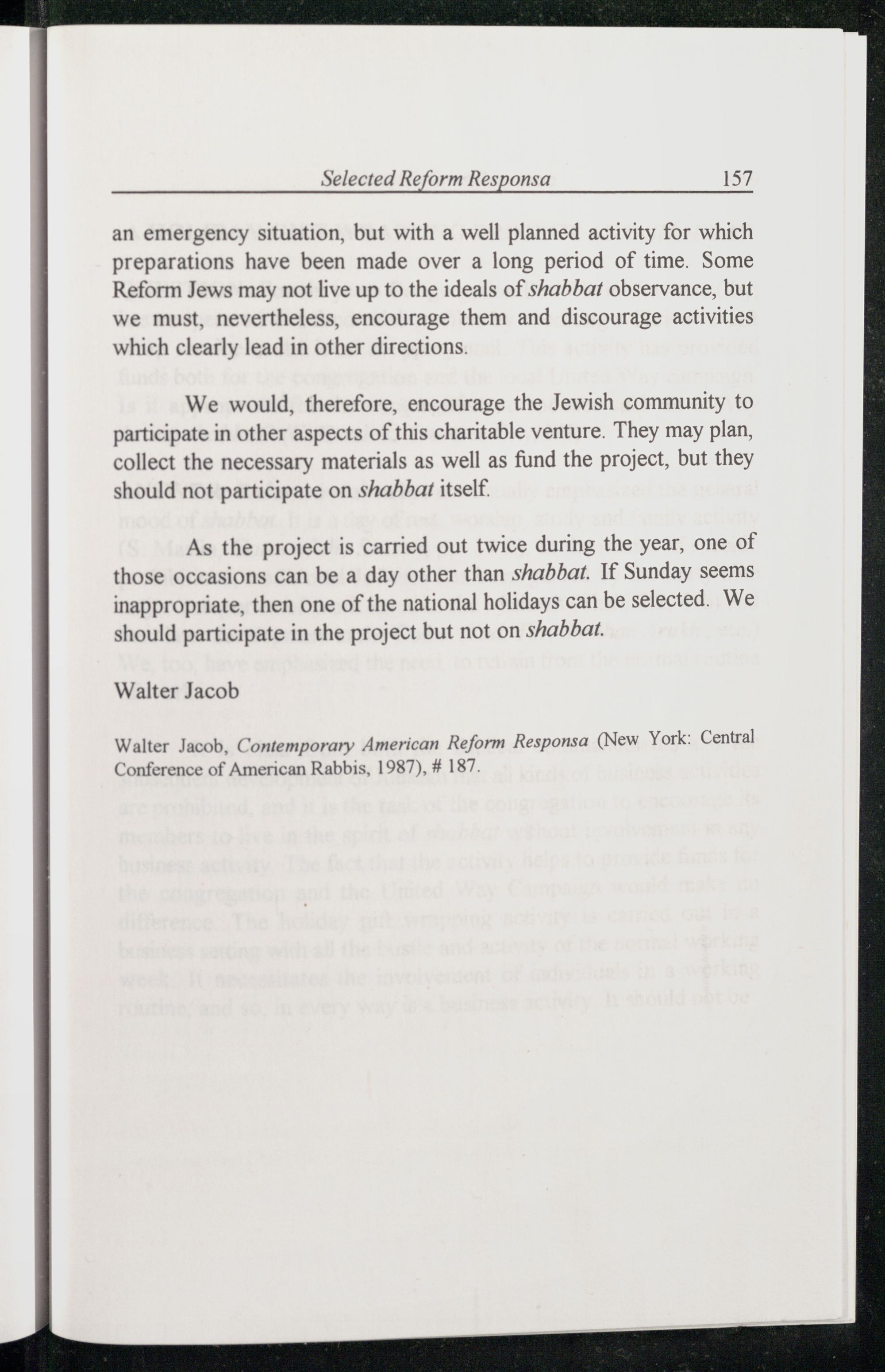 an emergency situation, but with a well planned activity for which preparations have been made over a long period of time. Some Reform Jews may not live up to the ideals of shabbat observance, but we must, nevertheless, encourage them and discourage activities which clearly lead in other directions.