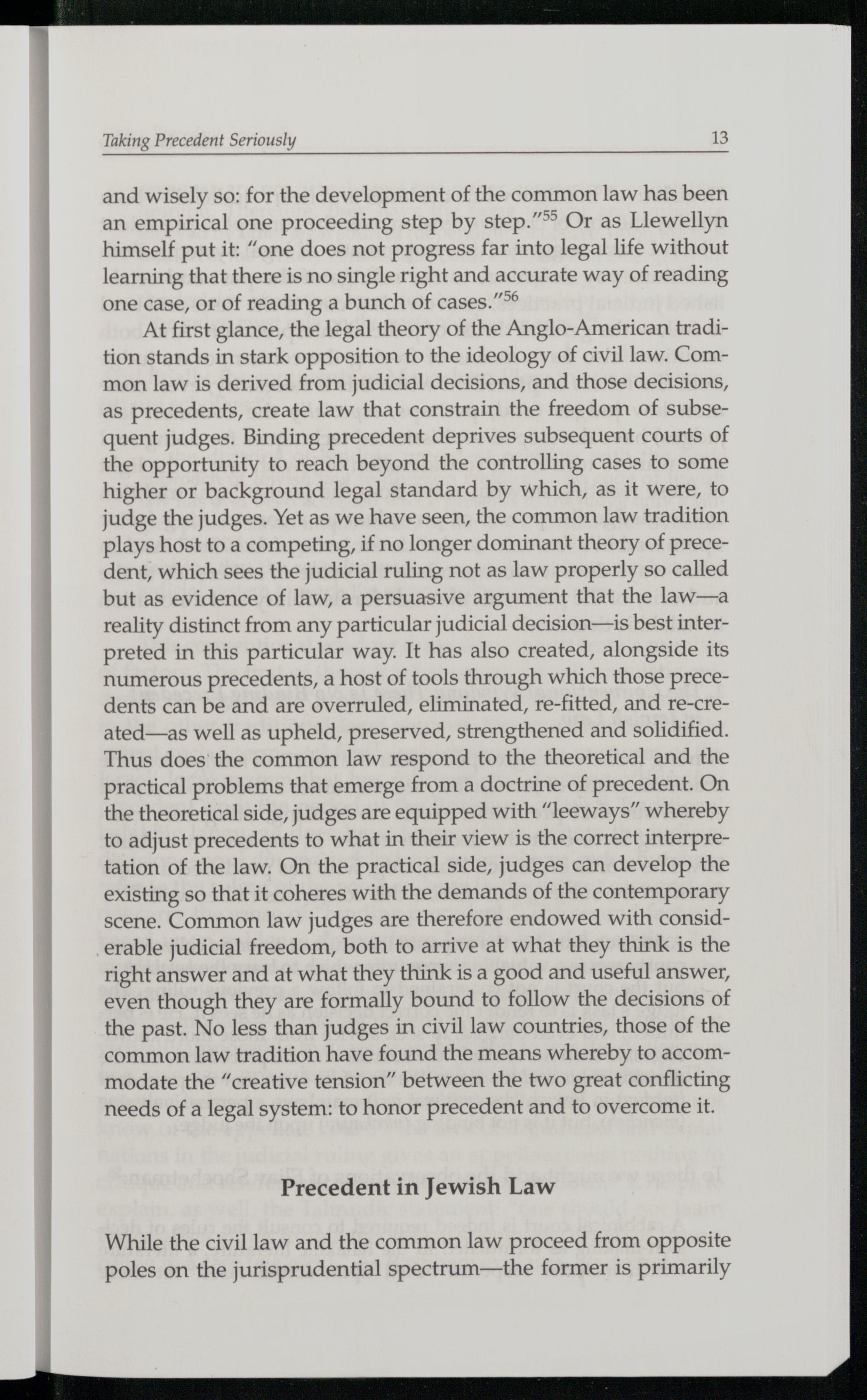 and wisely so: for the development of the common law has been an empirical one proceeding step by step.”*® Or as Llewellyn himself put it:“one does not progress far into legal life without learning that there is no single right and accurate way of reading one case, or of reading a bunch of cases.”