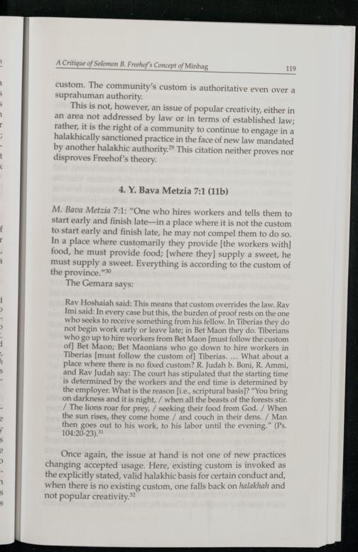 This is not, however, an issue of popular creativity, either in an area not addressed by law or in terms of established law; rather, it is the right of a community to continue to engage in a halakhically sanctioned practice in the face of new law mandated by another halakhic authority.* This citation neither proves nor disproves Freehof ’s theory.