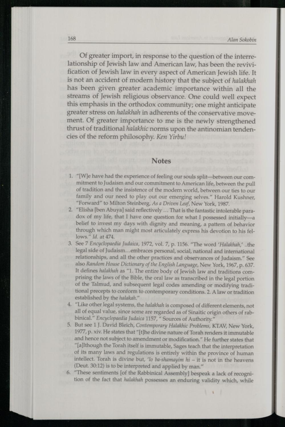 Of greater import, in response to the question of the interrelationship of Jewish law and American law, has been the revivification of Jewish law in every aspect of American Jewish life. It is not an accident of modern history that the subject of halakhah has been given greater academic importance within all the