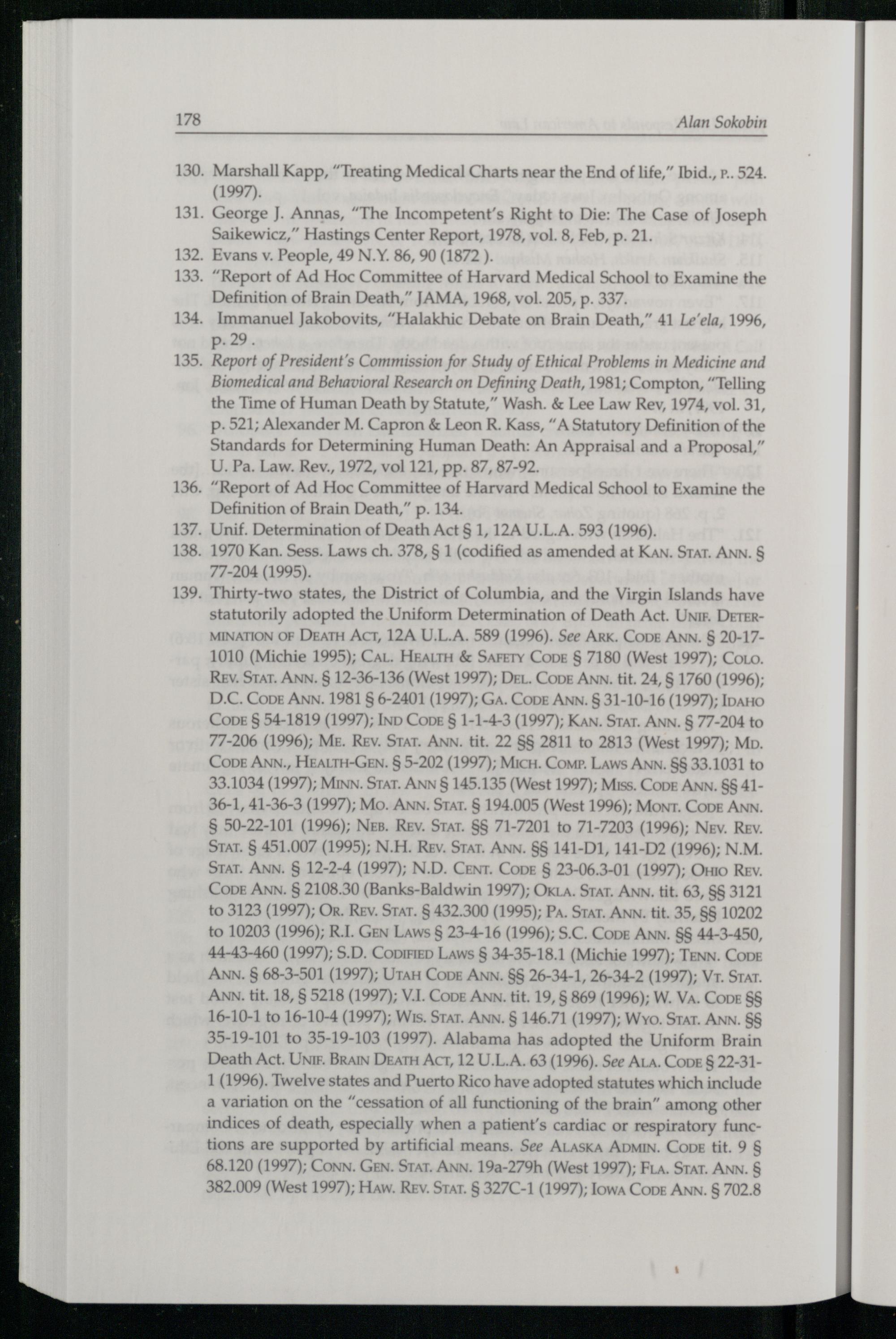 .“Report of Ad Hoc Committee of Harvard Medical School to Examine the Definition of Brain Death, ” p. 134.