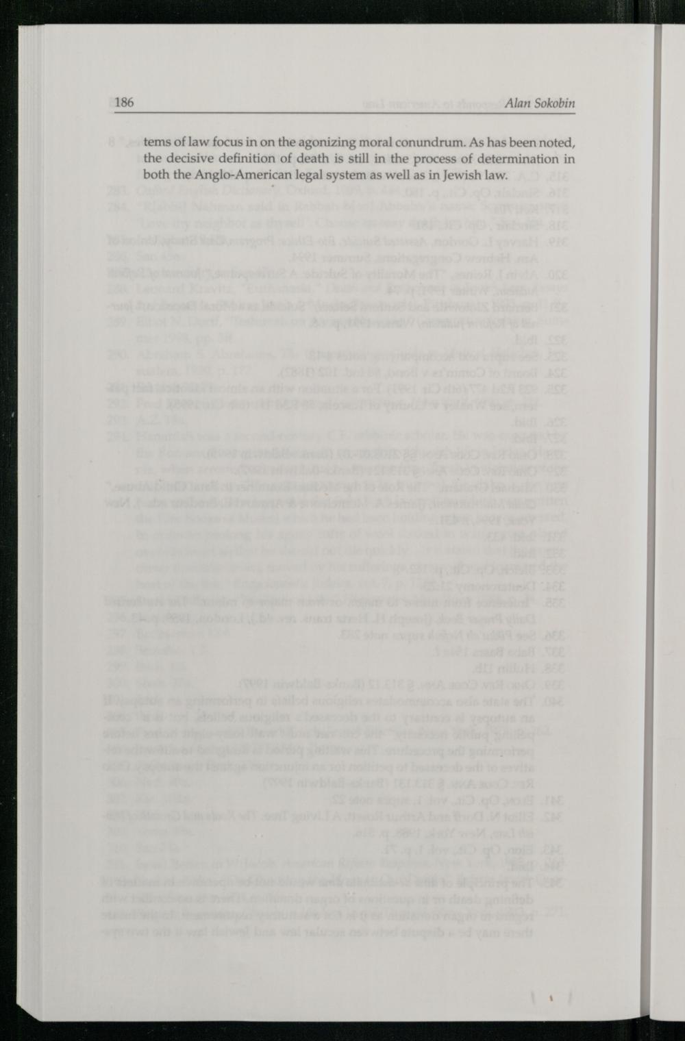 Alan Sokobin tems of law focus in on the agonizing moral conundrum. As has been noted, the decisive definition of death is still in the process of determination in both the Anglo-American legal system as well as in Jewish law