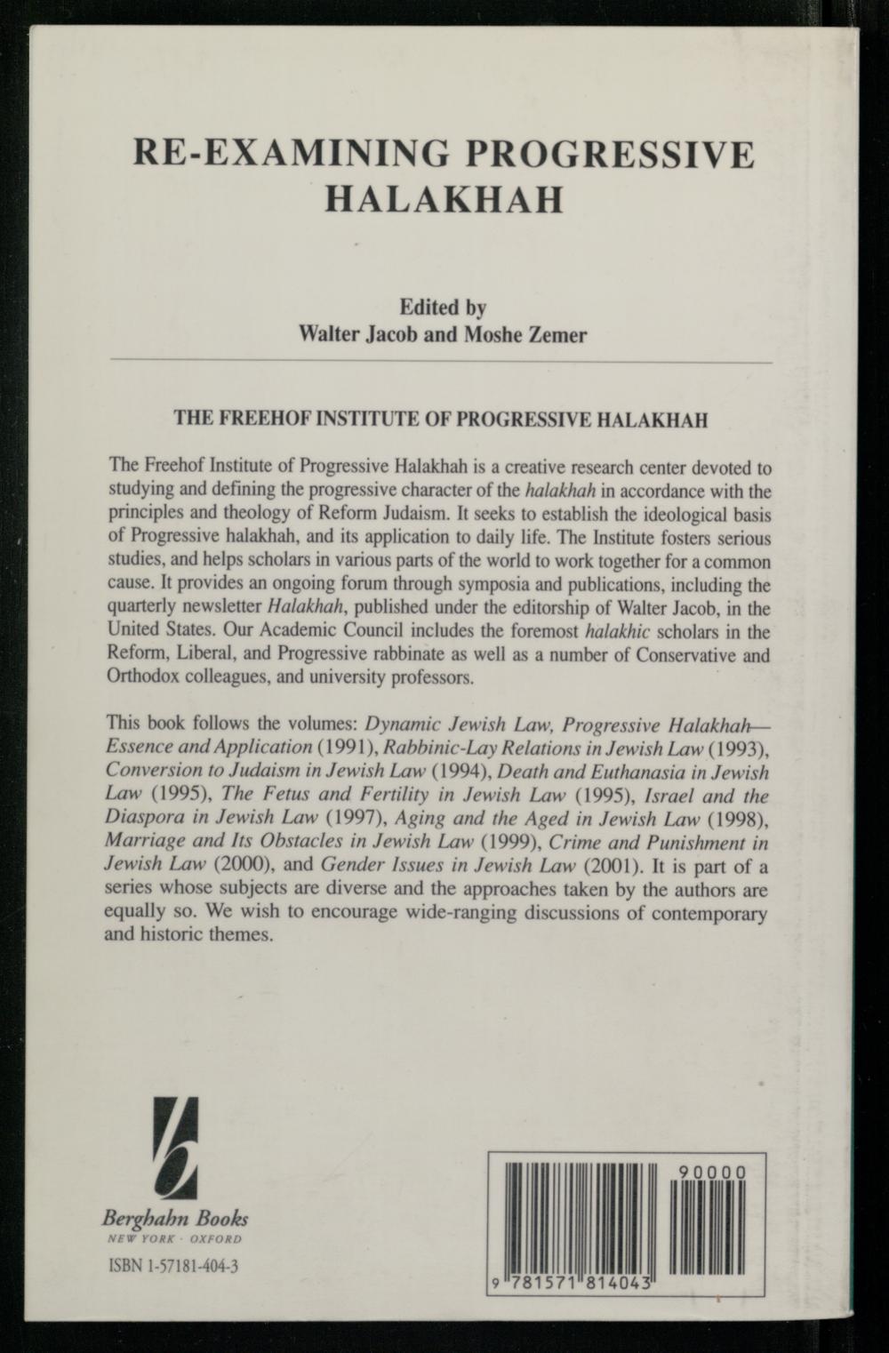 The Freehof Institute of Progressive Halakhah is a creative research center devoted to studying and defining the progressive character of the halakhah in accordance with the principles and theology of Reform Judaism. It seeks to establish the ideological basis of Progressive halakhah, and its application to daily life. The Institute fosters serious studies, and helps scholars in various parts of the world to work together for a common cause. It provides an ongoing forum through symposia and publications, including the quarterly newsletter Halakhah , published under the editorship of Walter Jacob , in the United States . Our Academic Council includes the foremost halakhic scholars in the Reform, Liberal, and Progressive rabbinate as well as a number of Conservative and Orthodox colleagues, and university professors.