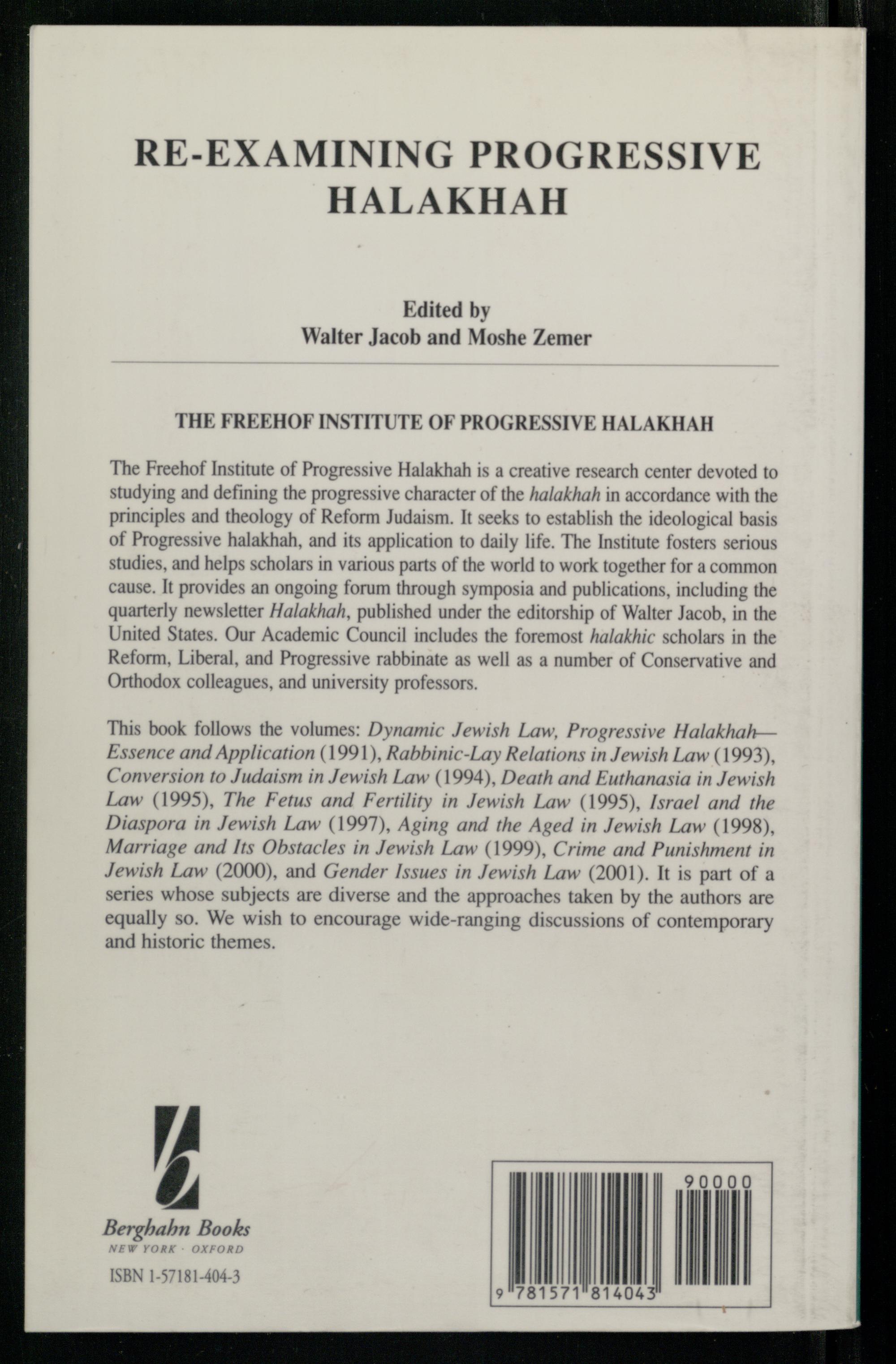 This book follows the volumes: Dynamic Jewish Law, Progressive Halakhah— Essence and Application(1991), Rabbinic-Lay Relations in Jewish Law(1993), Conversion to Judaism in Jewish Law(1994), Death and Euthanasia in Jewish Law(1995), The Fetus and Fertility in Jewish Law(1995), Israel and the Diaspora in Jewish Law(1997), Aging and the Aged in Jewish Law(1998), Marriage and Its Obstacles in Jewish Law(1999), Crime and Punishment in Jewish Law(2000), and Gender Issues in Jewish Law(2001). It is part of a series whose subjects are diverse and the approaches taken by the authors are equally so. We wish to encourage wide-ranging discussions of contemporary and historic themes.