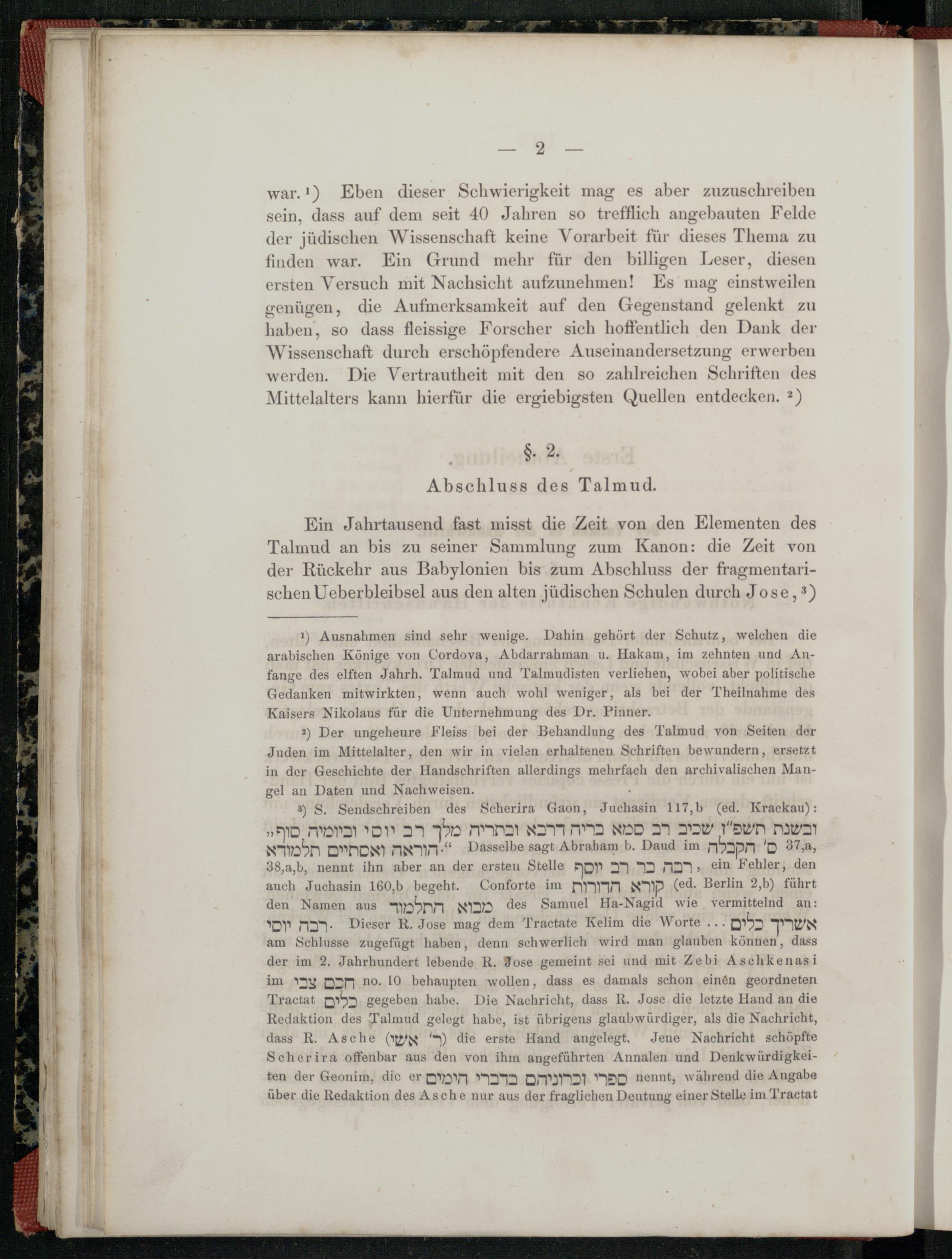 1) Ausnahmen sind sehr wenige. Dahin gehört der Schutz, welchen die arabischen Könige von Cordova, Abdarrahman u. Hakam, im zehnten und Anfange des elften Jahrh. Talmud und Talmudisten verliehen, wobei aber politische Gedanken mitwirkten, wenn auch wohl weniger, als bei der Theilnahme des Kaisers Nikolaus für die Unternehmung des Dr. Pinner. 19 b don 2) Der ungeheure Fleiss bei der Behandlung des Talmud von Seiten der Juden im Mittelalter, den wir in vielen erhaltenen Schriften bewundern, ersetzt in der Geschichte der Handschriften allerdings mehrfach den archivalischen Mangel an Daten und Nachweisen.