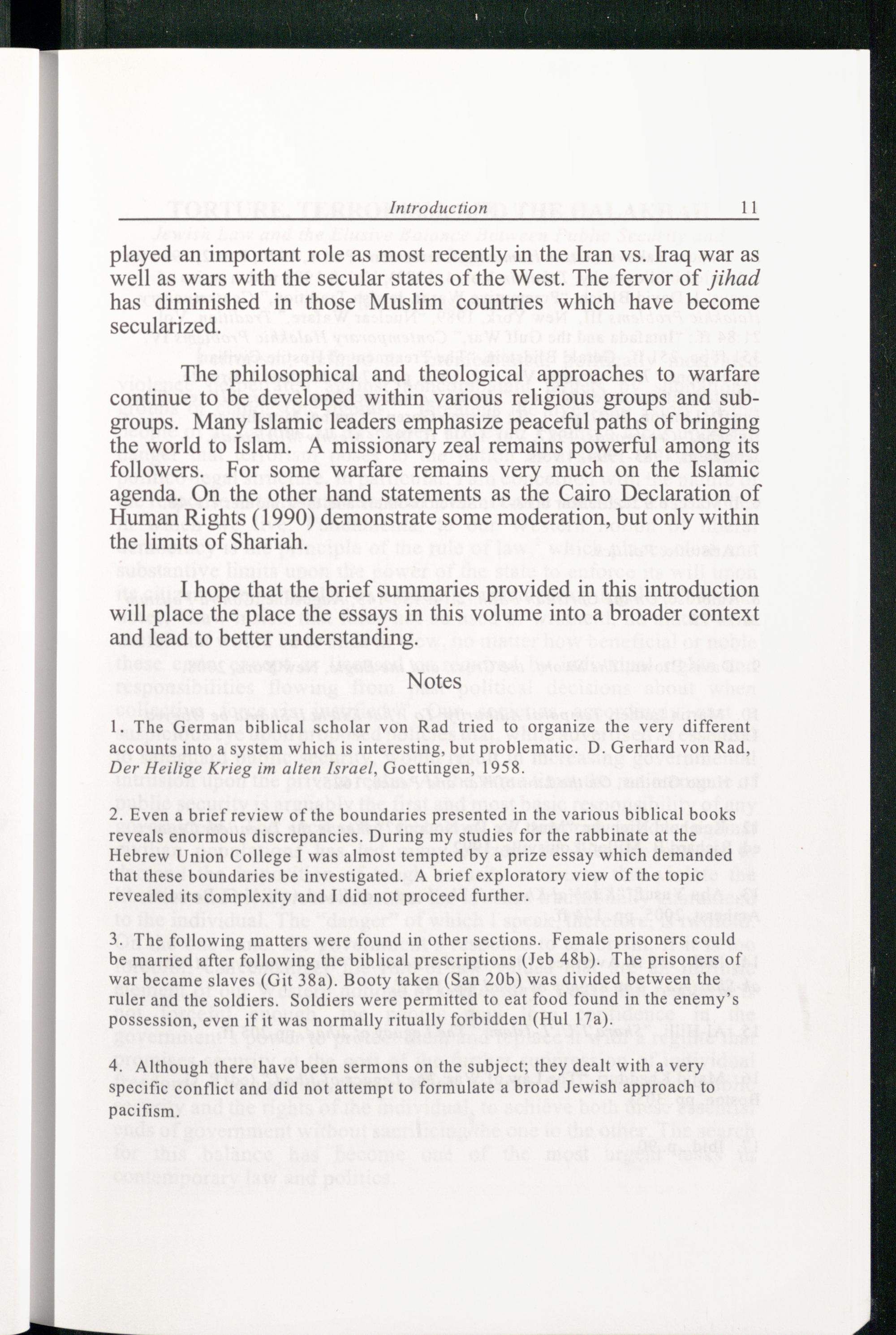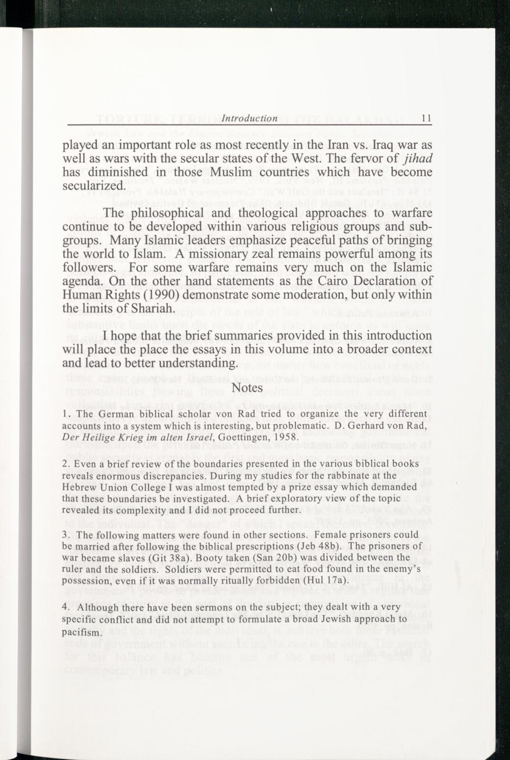 1. The German biblical scholar von Rad tried to organize the very different accounts into a system which is interesting, but problematic. D. Gerhard von Rad, Der Heilige Krieg im alten Israel, Goettingen , 1958.