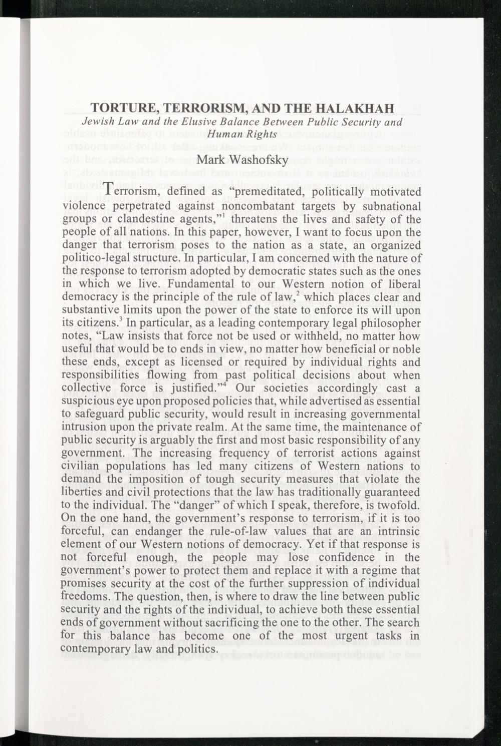 TORTURE, TERRORISM, AND THE HALAKHAH Jewish Law and the Elusive Balance Between Public Security and Human Rights