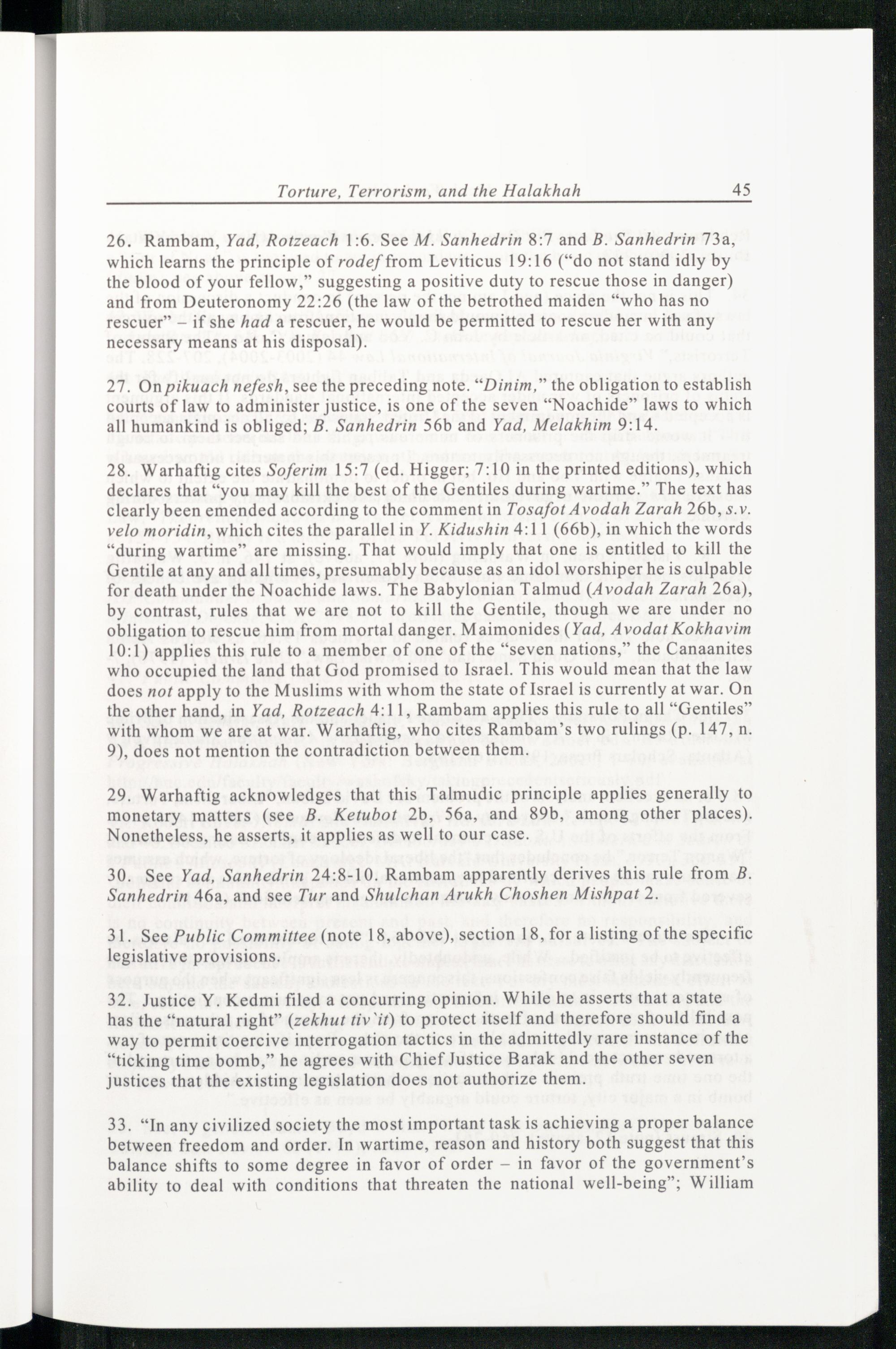 26. Rambam , Yad, Rotzeach 1:6. See M. Sanhedrin 8:7 and B. Sanhedrin 73a, which learns the principle of rodef from Leviticus 19:16(“do not stand idly by the blood of your fellow,” suggesting a positive duty to rescue those in danger) and from Deuteronomy 22:26(the law of the betrothed maiden“who has no rescuer”— if she had a rescuer, he would be permitted to rescue her with any