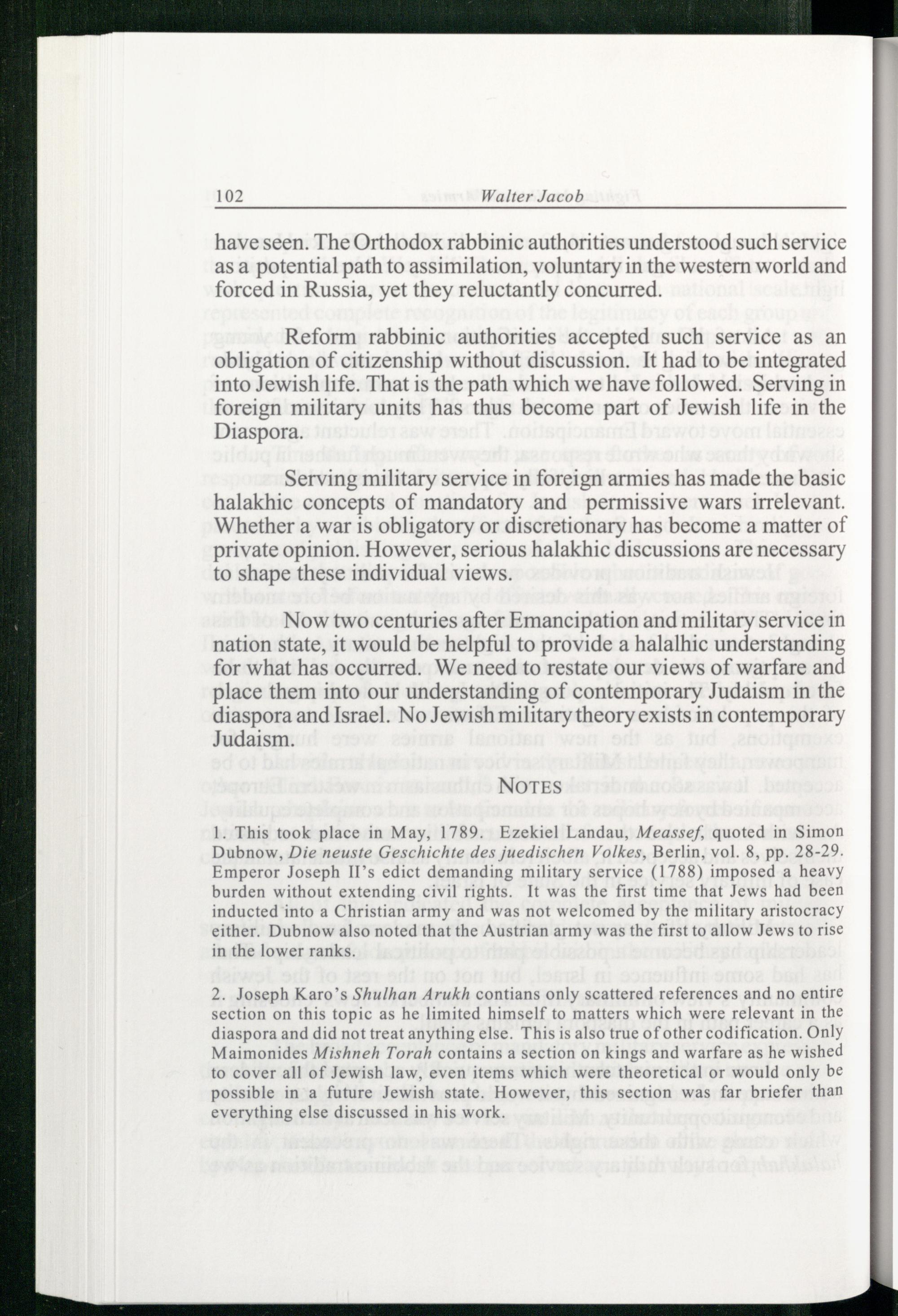 Reform rabbinic authorities accepted such service as an obligation of citizenship without discussion. It had to be integrated into Jewish life. That is the path which we have followed. Serving in foreign military units has thus become part of Jewish life in the Diaspora.