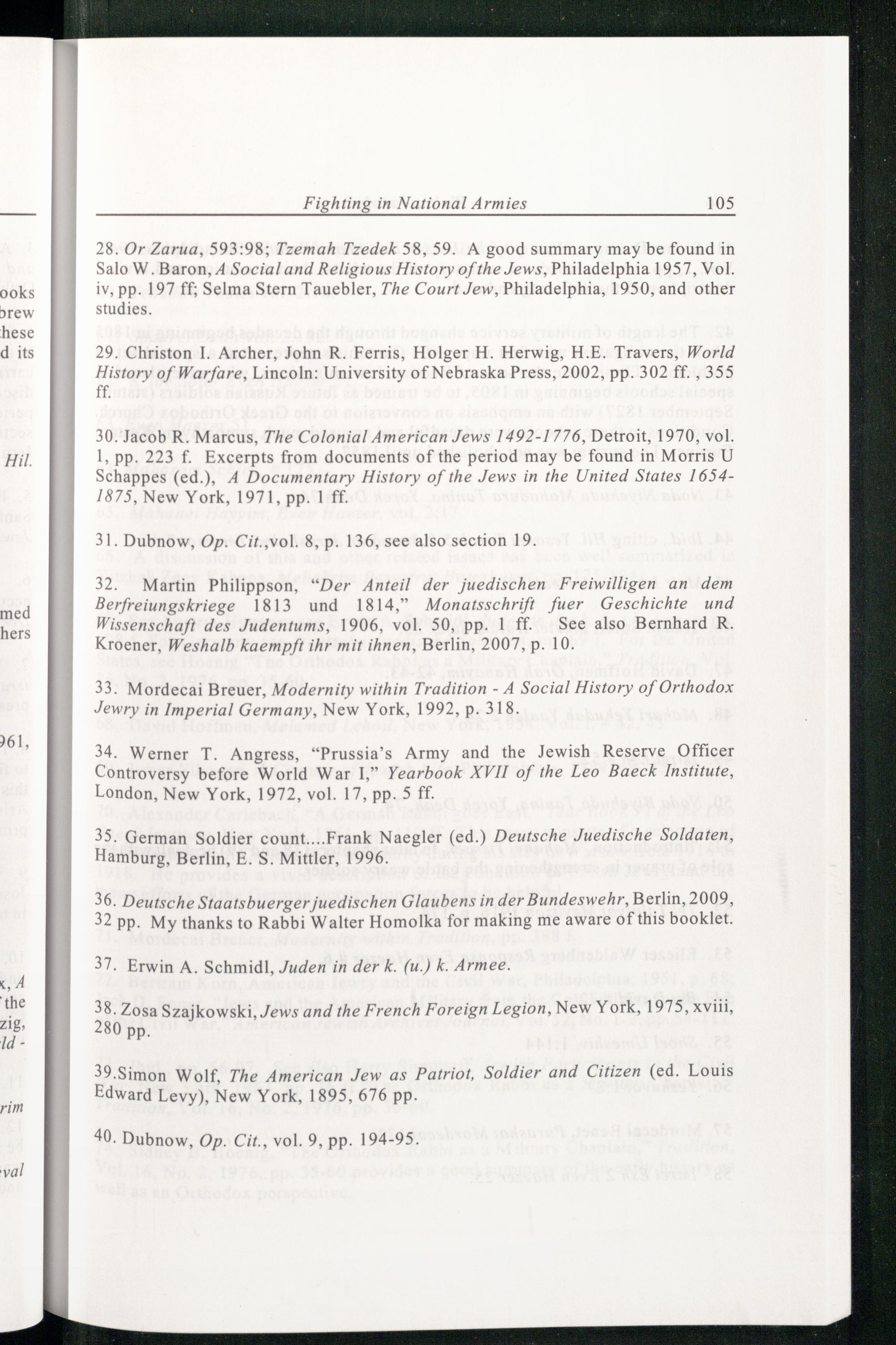 34. Werner T. Angress,Prussias Army and the Jewish Reserve Officer Controversy before World War 1, Yearbook XVII of the Leo Baeck Institute, London , New York , 1972, vol. 17, pp. 5 ff.