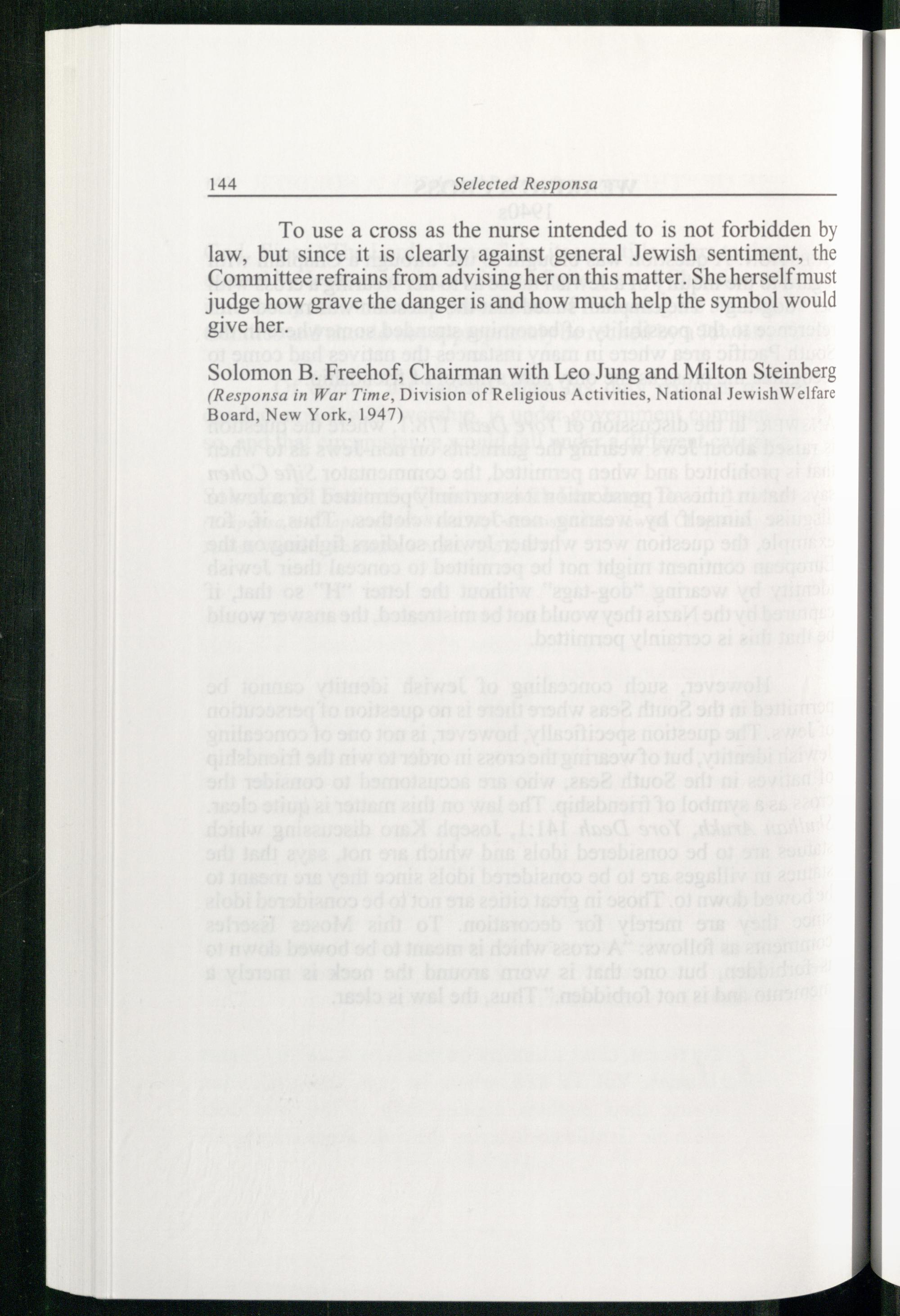 Solomon B. Freehof , Chairman with Leo Jung and Milton Steinberg (Responsa in War Time, Division of Religious Activities, National JewishW elfare Board, New York , 1947)