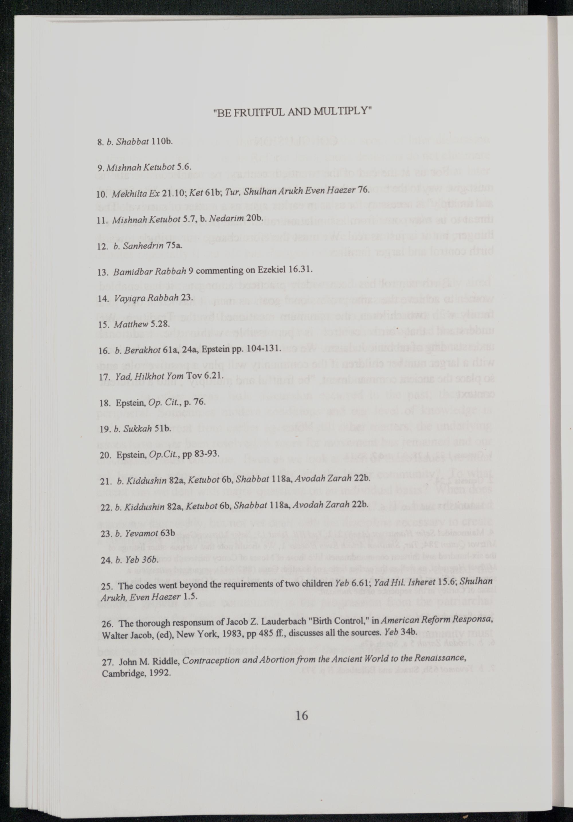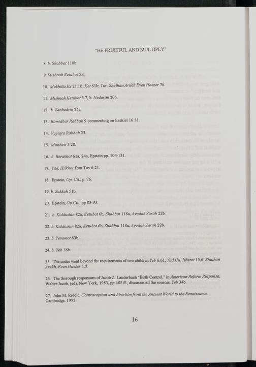 26. The thorough responsum of Jacob Z. Lauderbach"Birth Control, " in American Reform Responsa, Walter Jacob ,(ed), New York , 1983, pp 485 ff, discusses all the sources. Yeb 34b.