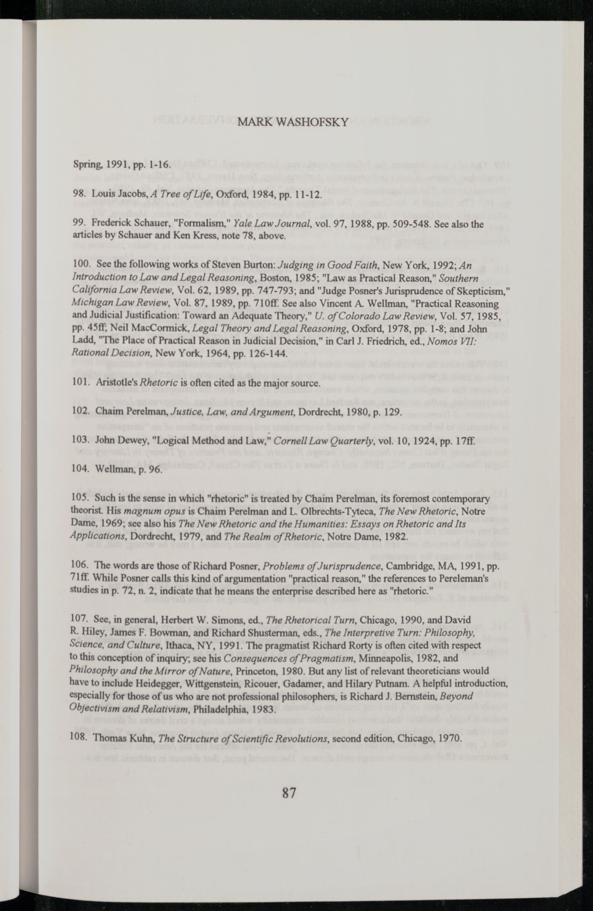 106. The words are those of Richard Posner , Problems of Jurisprudence, Cambridge , MA , 1991, pp. 71ff. While Posner calls this kind of argumentation"practical reason," the references to Pereleman's studies in p. 72, n. 2, indicate that he means the enterprise described here as"rhetoric."
