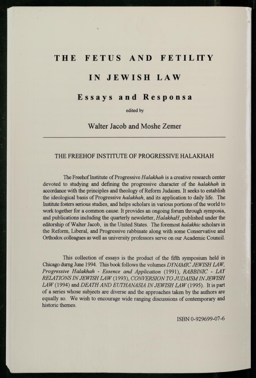 This collection of essays is the product of the fifth symposium held in Chicago durng June 1994. This book follows the volumes DYNAMIC JEWISH LAW, Progressive Halakhah- Essence and Application(1991), RABBINIC- LAY RELATIONS IN JEWISH LAW(1993), CONVERSION TO JUDAISM IN JEWISH LAW(1994) and DEATH AND EUTHANASIA IN JEWISH LAW(1995). It is part of a series whose subjects are diverse and the approaches taken by the authors are equally so. We wish to encourage wide ranging discussions of contemporary and historic themes.