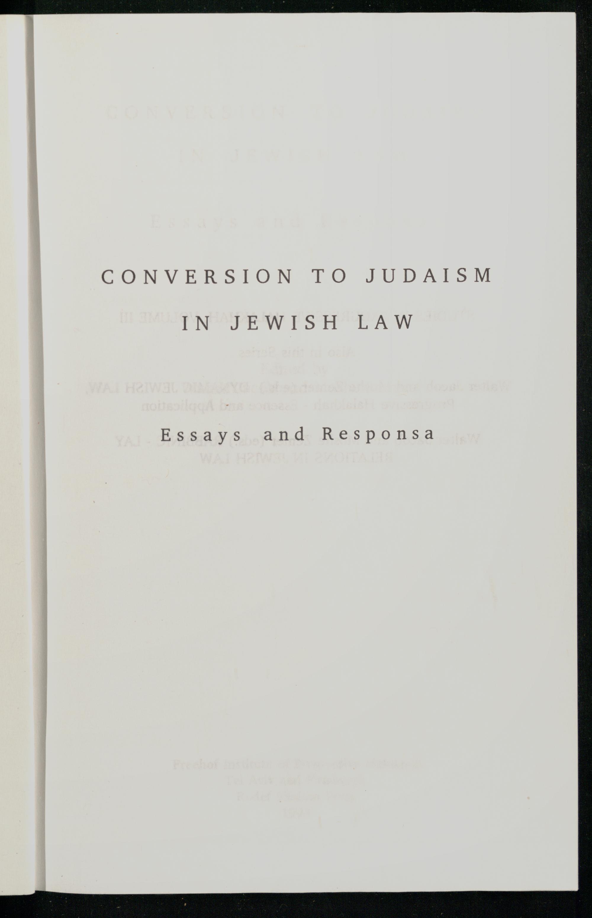 Conversion to Judaism in Jewish law : essays and responsa / edited by Walter Jacob and Moshe Zemer