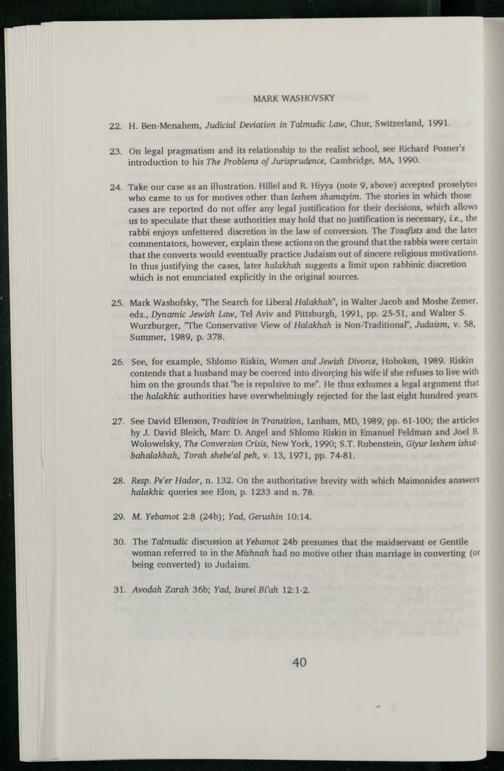 Mark Washofsky,"The Search for Liberal Halakhah", in Walter Jacob and Moshe Zemer , eds., Dynamic Jewish Law, Tel Aviv and Pittsburgh , 1991, pp. 25-51, and Walter S. Wurzburger ,"The Conservative View of Halakhah is Non-Traditional", Judaism , v. 58, Summer, 1989, p. 378.