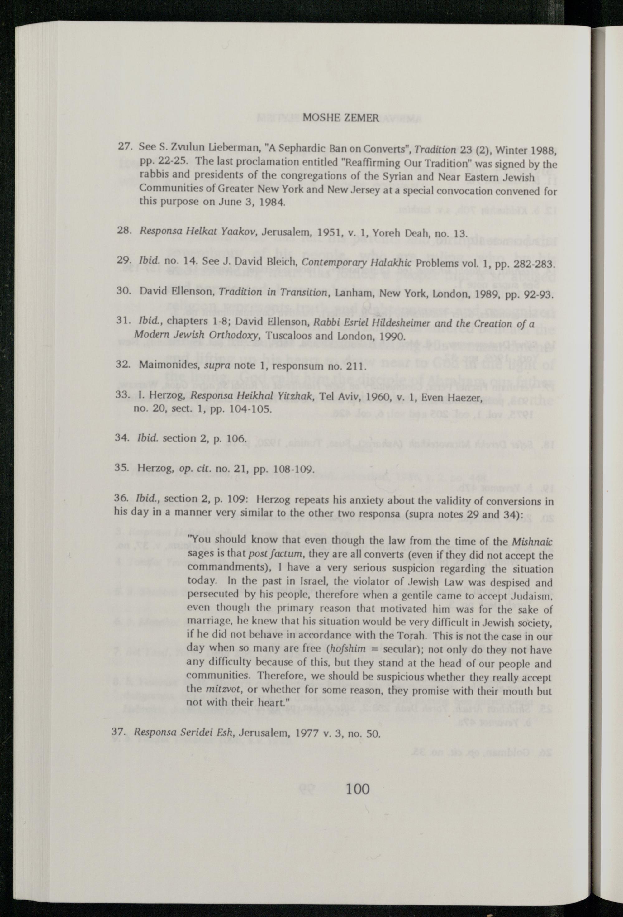 27. See S. Zvulun Lieberman,"A Sephardic Ban on Converts", Tradition 23(2), Winter 1988, Pp. 22-25. The last proclamation entitled"Reaffirming Our Tradition" was signed by the rabbis and presidents of the congregations of the Syrian and Near Eastern Jewish Communities of Greater New York and New Jersey at a special convocation convened for this purpose on June 3, 1984.
