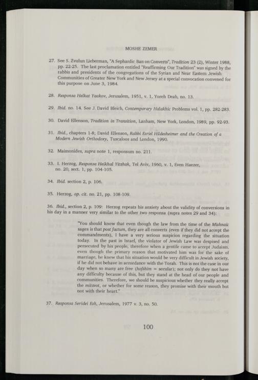 36. Ibid., section 2, p. 109: Herzog repeats his anxiety about the validity of conversions in his day in a manner very similar to the other two responsa(supra notes 29 and 34):