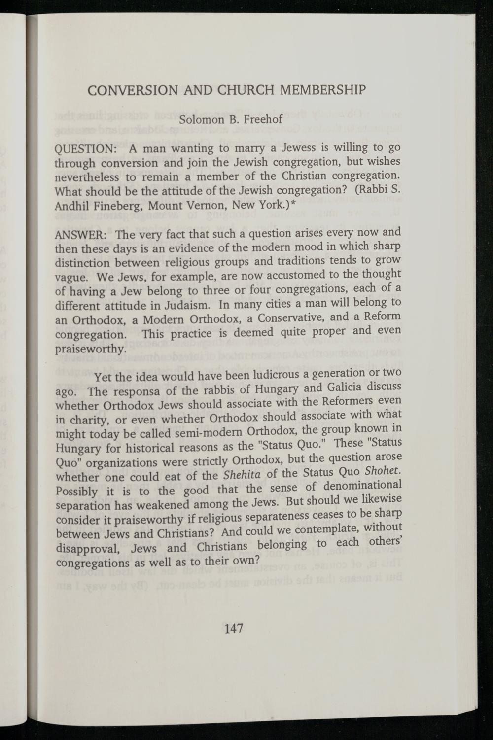 CONVERSION AND CHURCH MEMBERSHIP Solomon B. Freehof
