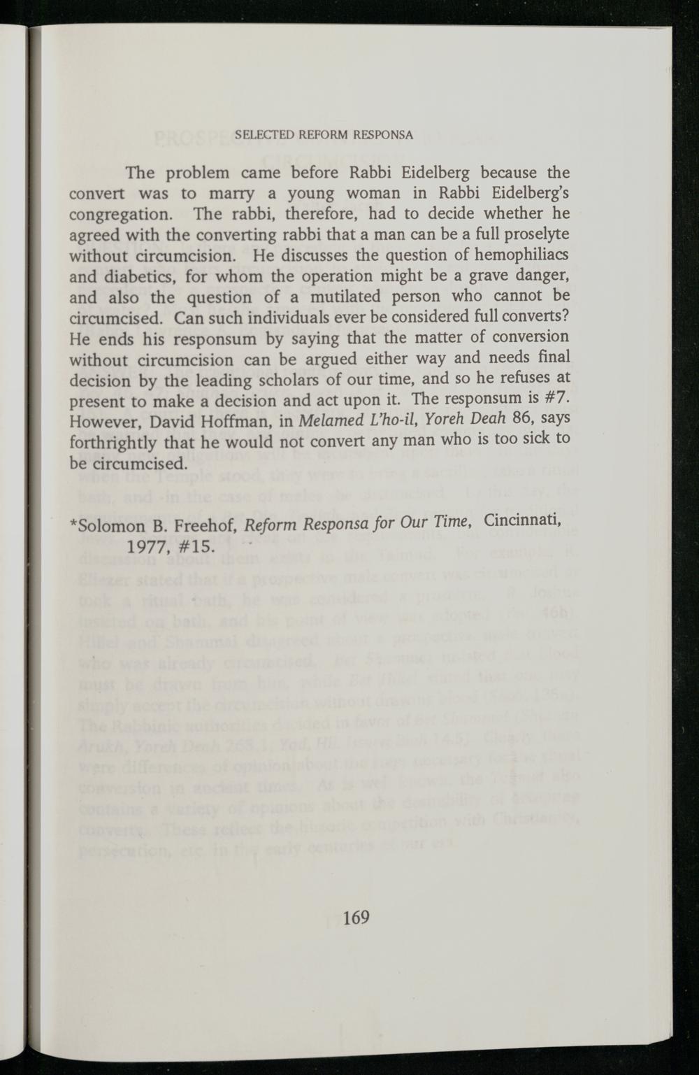 The problem came before Rabbi Eidelberg because the convert was to marry a young woman in Rabbi Eidelberg’s congregation. The rabbi, therefore, had to decide whether he agreed with the converting rabbi that a man can be a full proselyte without circumcision. He discusses the question of hemophiliacs and diabetics, for whom the operation might be a grave danger, and also the question of a mutilated person who cannot be circumcised. Can such individuals ever be considered full converts? He ends his responsum by saying that the matter of conversion without circumcision can be argued either way and needs final decision by the leading scholars of our time, and so he refuses at present to make a decision and act upon it. The responsum is#7. However, David Hoffman, in Melamed L’ho-il, Yoreh Deah 86, says forthrightly that he would not convert any man who is too sick to be circumcised.