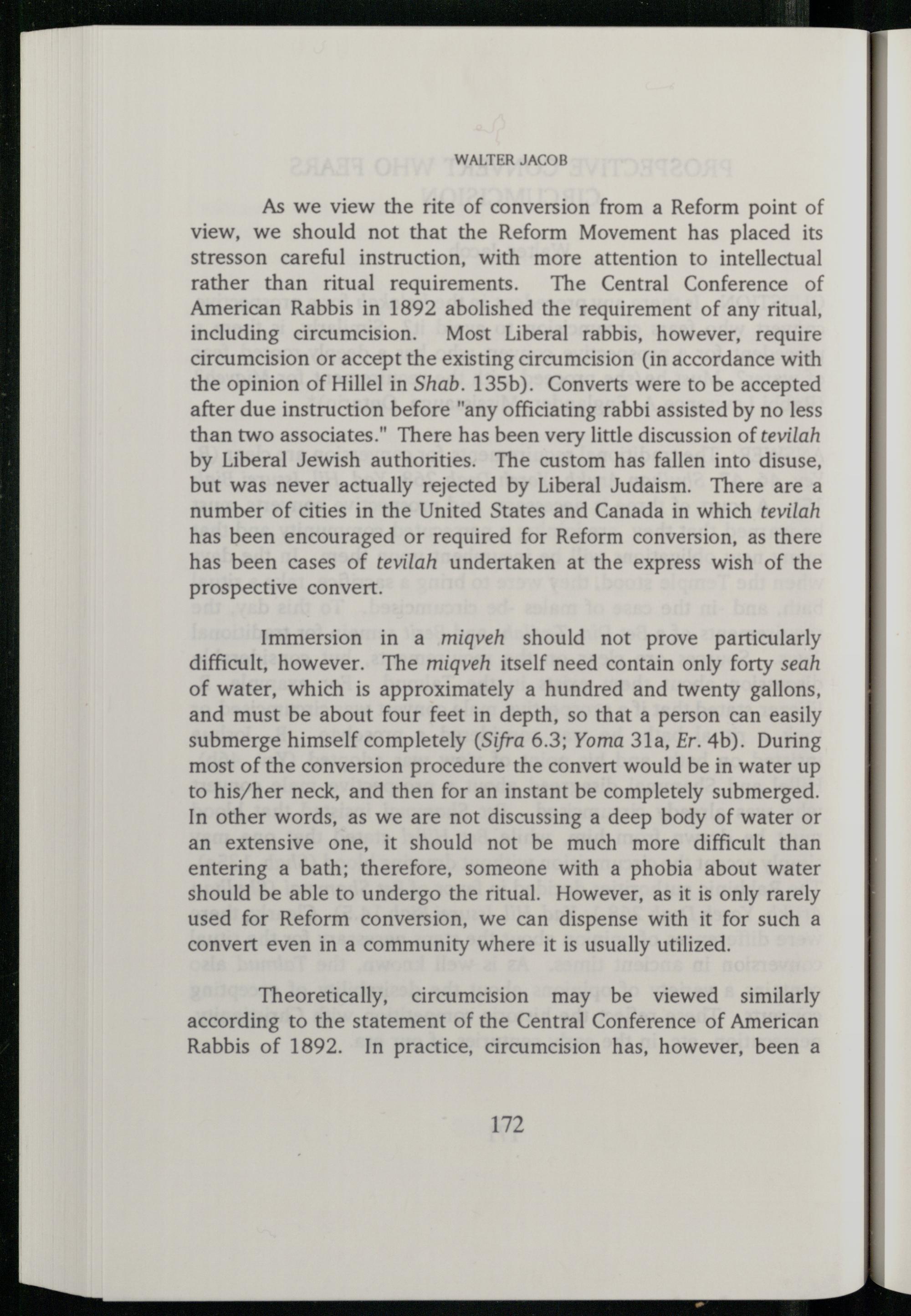 according to the statement of the Central Conference of American Rabbis of 1892. In practice, circumcision has, however, been a
