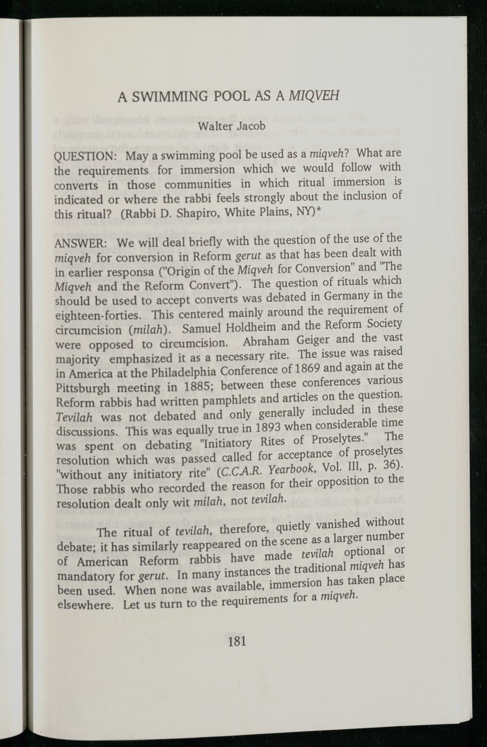 A SWIMMING POOL AS A MIQVEH Walter Jacob