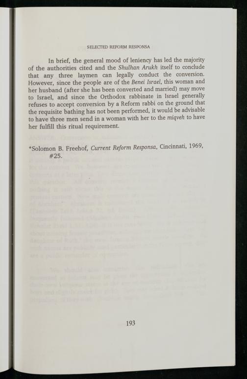 In brief, the general mood of leniency has led the majority of the authorities cited and the Shulhan Arukh itself to conclude that any three laymen can legally conduct the conversion. However, since the people are of the Benei Israel, this woman and her husband(after she has been converted and married) may move to Israel , and since the Orthodox rabbinate in Israel generally refuses to accept conversion by a Reform rabbi on the ground that the requisite bathing has not been performed, it would be advisable to have three men send in a woman with her to the migveh to have her fulfill this ritual requirement.