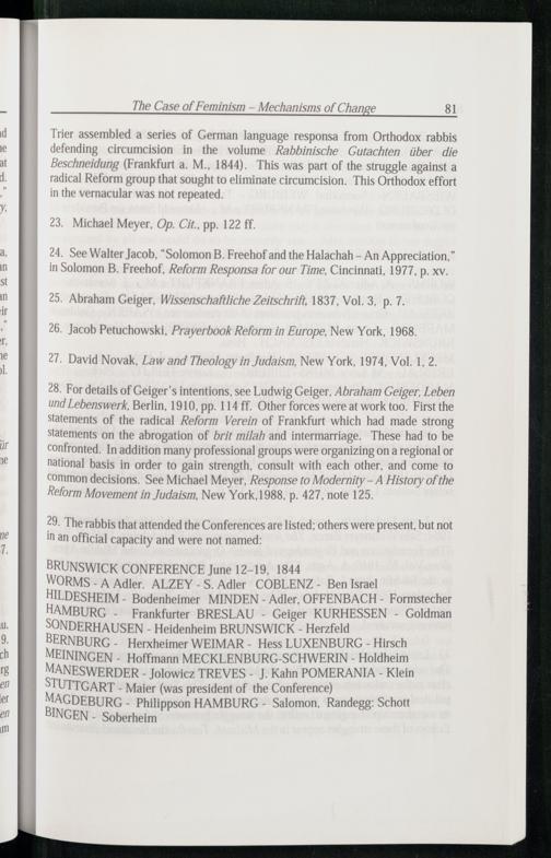 statements on the abrogation of brit milah and intermarriage. These had to be confronted. In addition many professional groups were organizing on a regional or national basis in order to gain strength, consult with each other, and come to common decisions. See Michael Meyer, Response to Modernity- A History of the Reform Movement in Judaism, New York , 1988, p. 427, note 125.