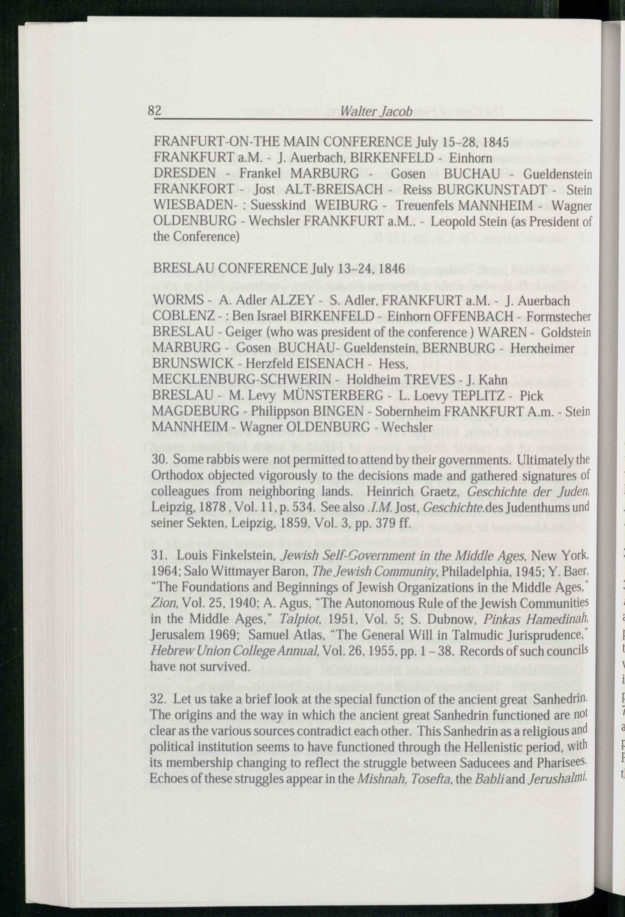 30. Some rabbis were not permitted to attend by their governments. Ultimately the Orthodox objected vigorously to the decisions made and gathered signatures of colleagues from neighboring lands. Heinrich Graetz , Geschichte der Juden, Leipzig , 1878, Vol. 11, p. 534. See also.L.M. Jost, Geschichte.des Judenthums und seiner Sekten, Leipzig , 1859, Vol. 3, pp. 379 ff.