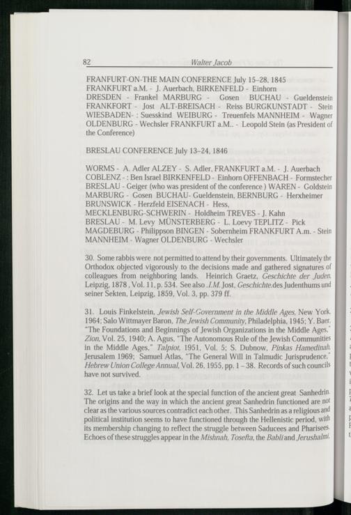 30. Some rabbis were not permitted to attend by their governments. Ultimately the Orthodox objected vigorously to the decisions made and gathered signatures of colleagues from neighboring lands. Heinrich Graetz , Geschichte der Juden, Leipzig , 1878, Vol. 11, p. 534. See also.L.M. Jost, Geschichte.des Judenthums und seiner Sekten, Leipzig , 1859, Vol. 3, pp. 379 ff.