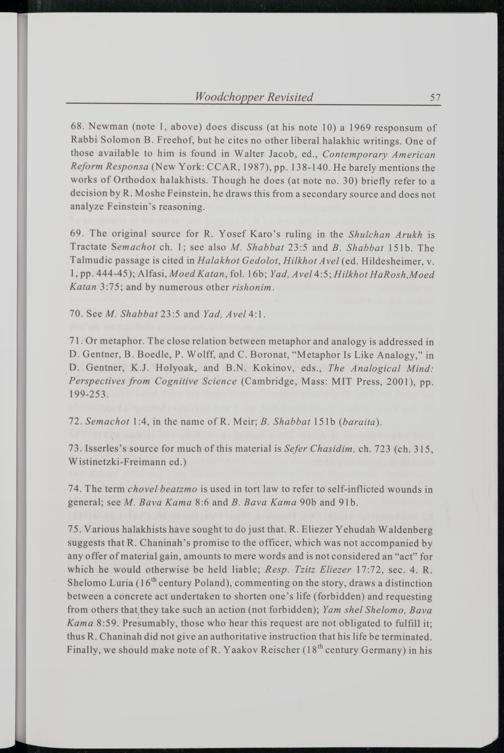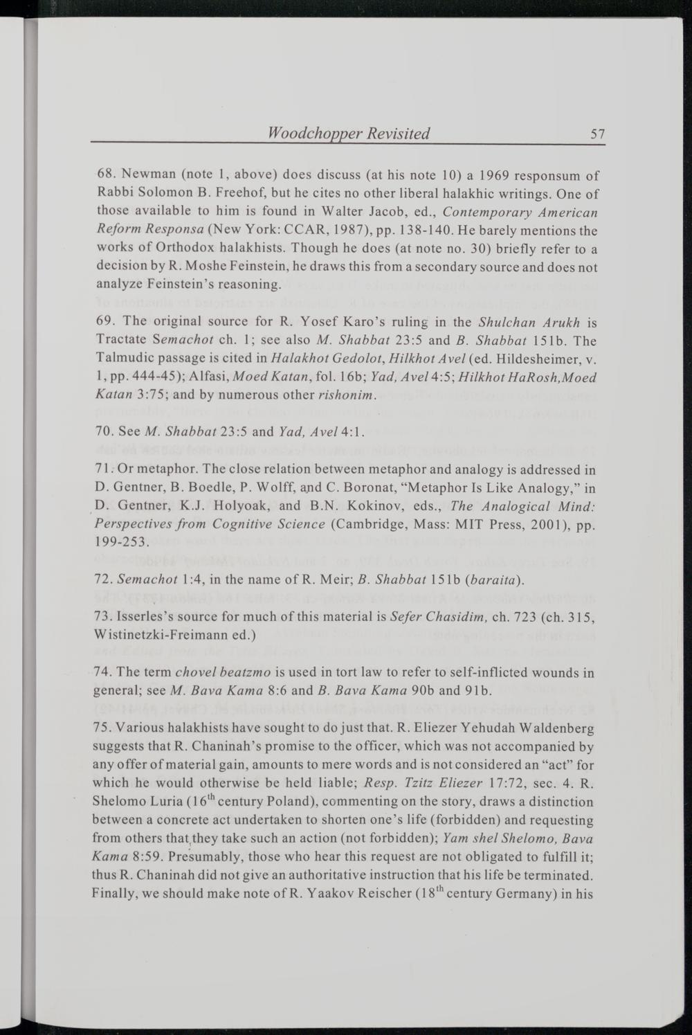 68. Newman(note 1, above) does discuss(at his note 10) a 1969 responsum of Rabbi Solomon B. Freehof, but he cites no other liberal halakhic writings. One of those available to him is found in Walter Jacob , ed., Contemporary American Reform Responsa(New York : CCAR, 1987), pp. 138-140. He barely mentions the works of Orthodox halakhists. Though he does(at note no. 30) briefly refer to a decision by R. Moshe Feinstein , he draws this from a secondary source and does not analyze Feinstein ’s reasoning.
