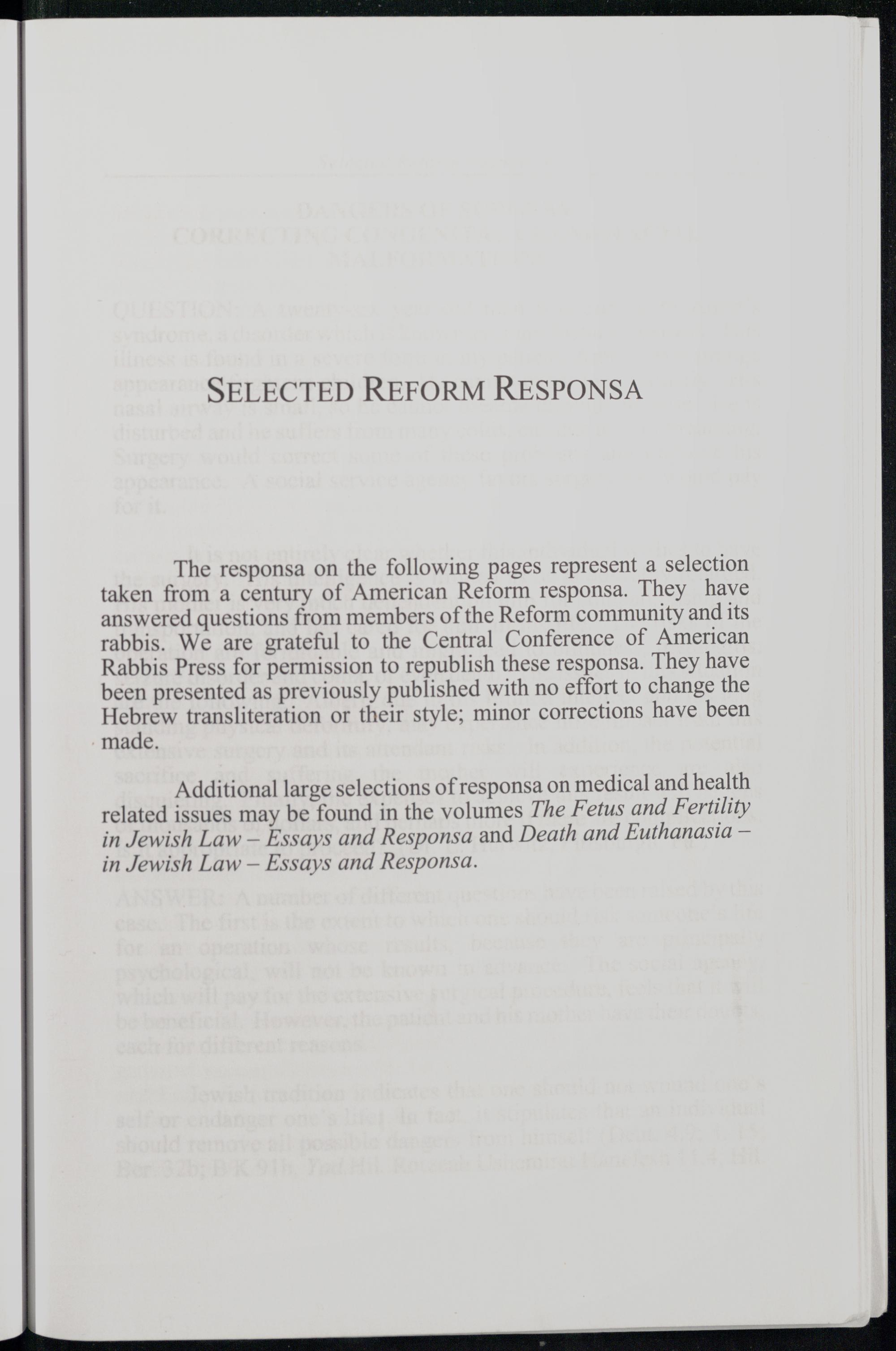 SELECTED REFORM RESPONSA
