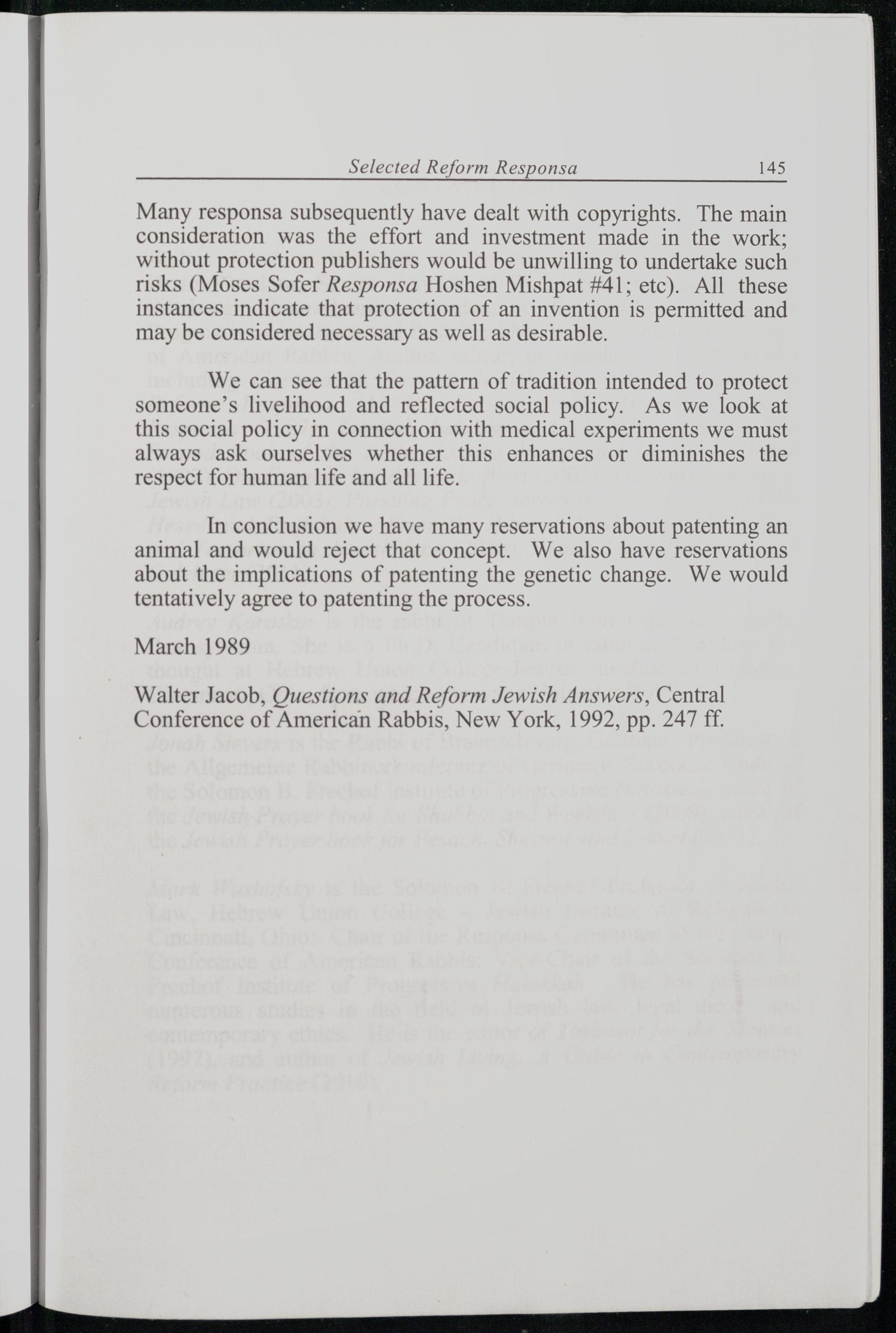 Selected Reform Responsa 145