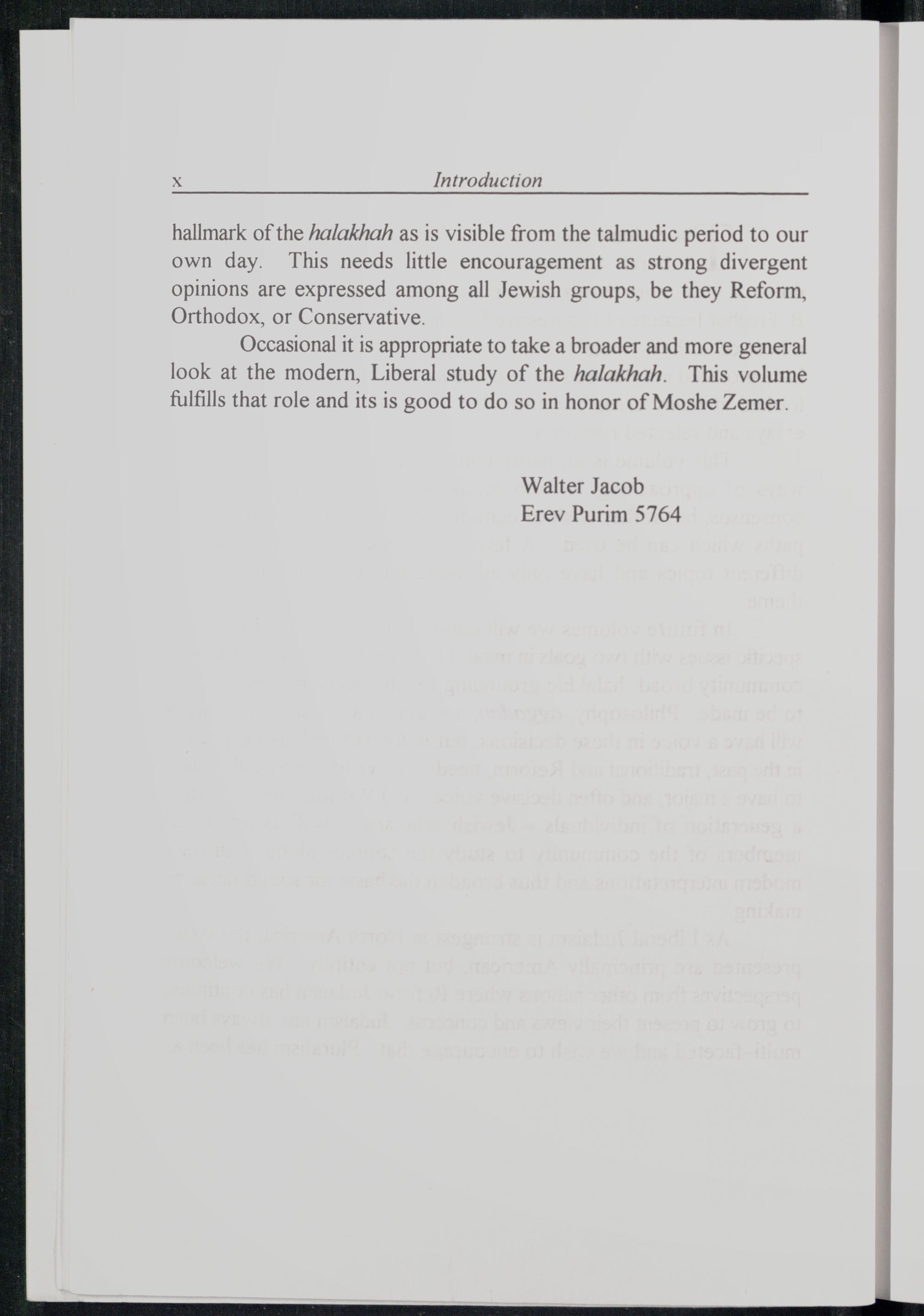 Occasional it is appropriate to take a broader and more general look at the modern, Liberal study of the halakhah. This volume fulfills that role and its is good to do so in honor of Moshe Zemer .