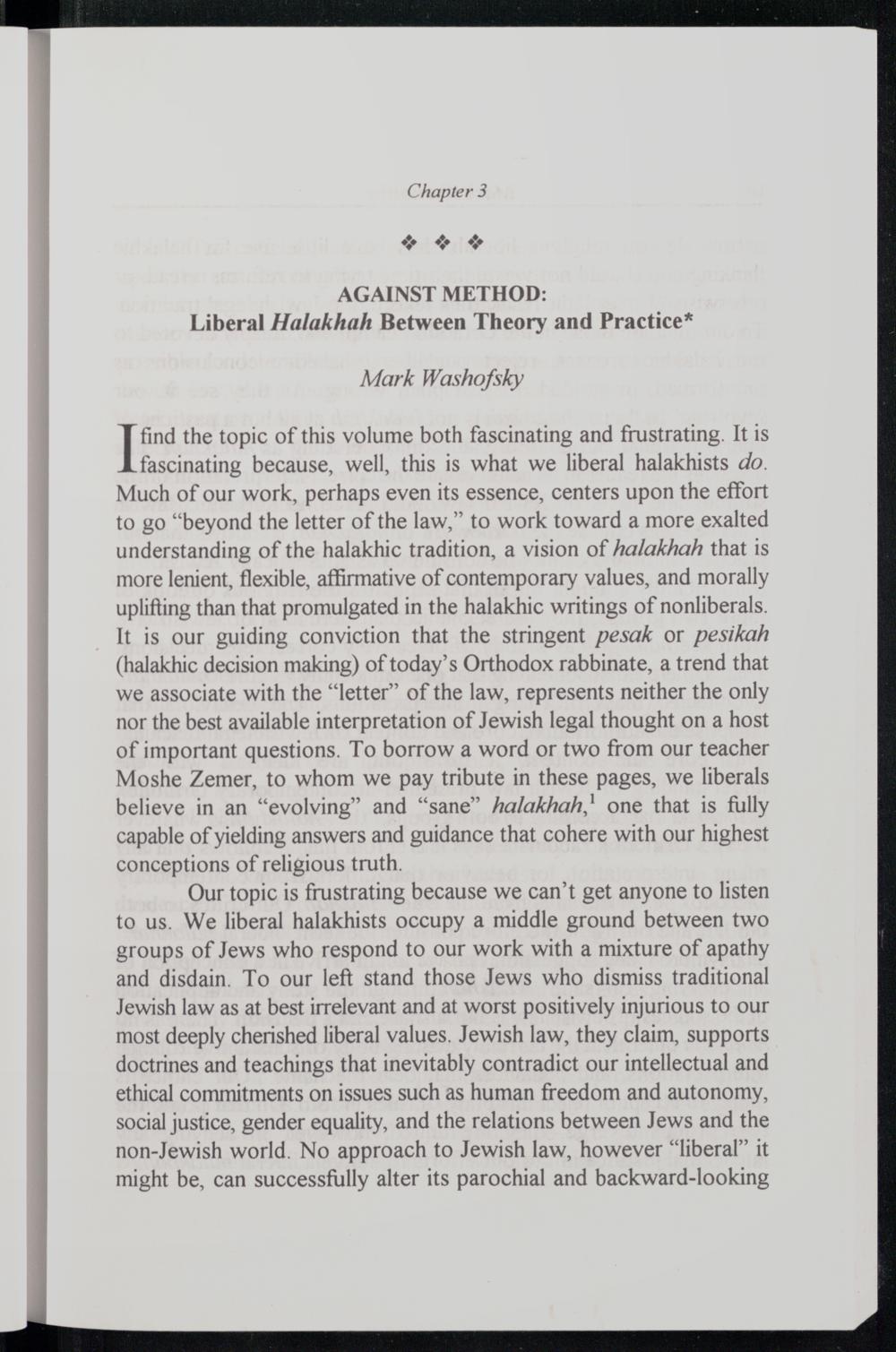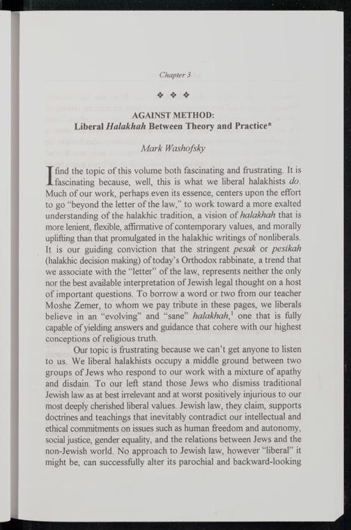 AGAINST METHOD: Liberal Halakhah Between Theory and Practice*