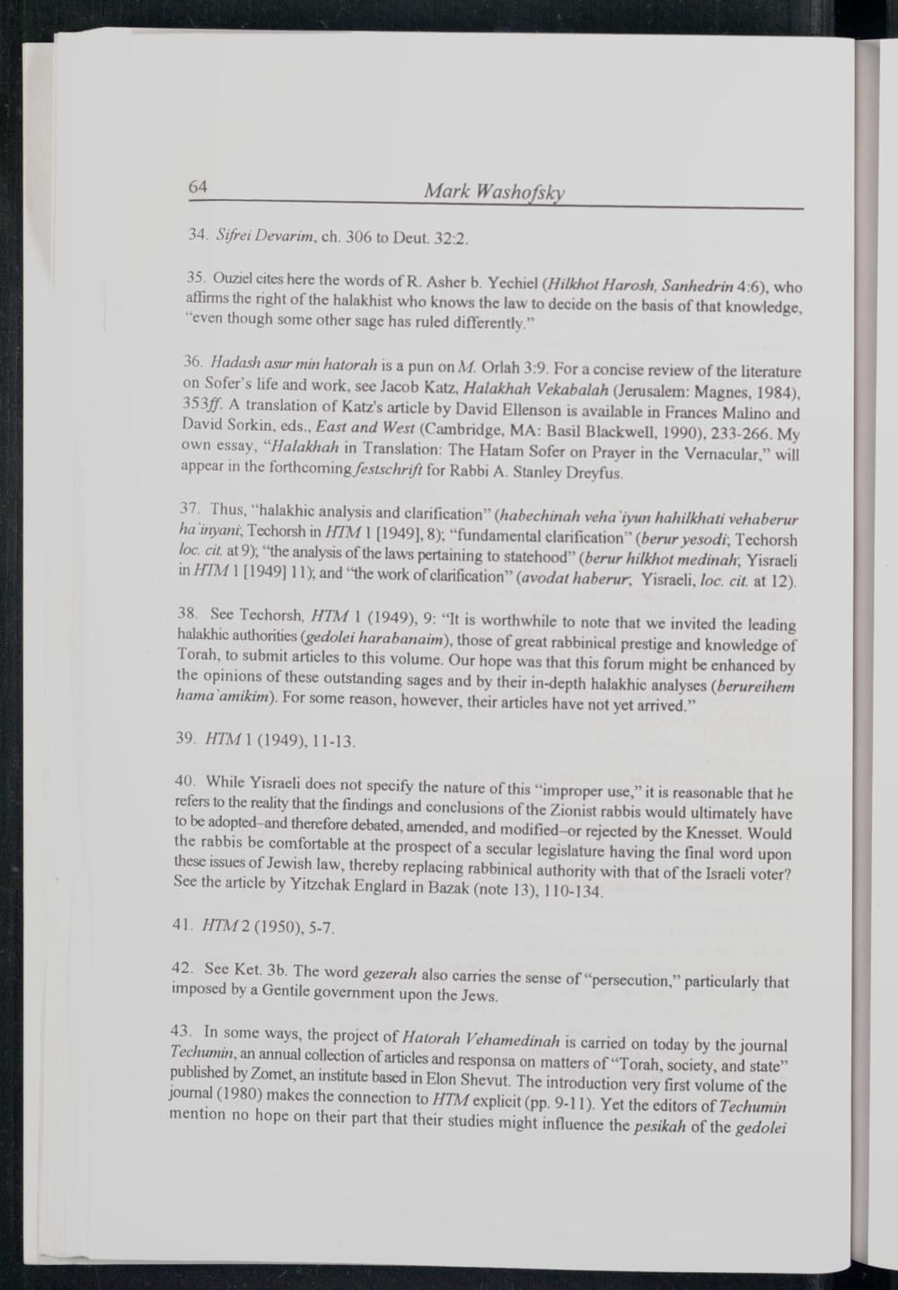 38. See Techorsh, HTM 1(1949), 9:“It is worthwhile to note that we invited the leading halakhic authorities(gedolei harabanaim), those of great rabbinical prestige and knowledge of Torah , to submit articles to this volume. Our hope was that this forum might be enhanced by the opinions of these outstanding sages and by their in-depth halakhic analyses(berureihem hama amikim). For some reason, however. their articles have not yet arrived.”