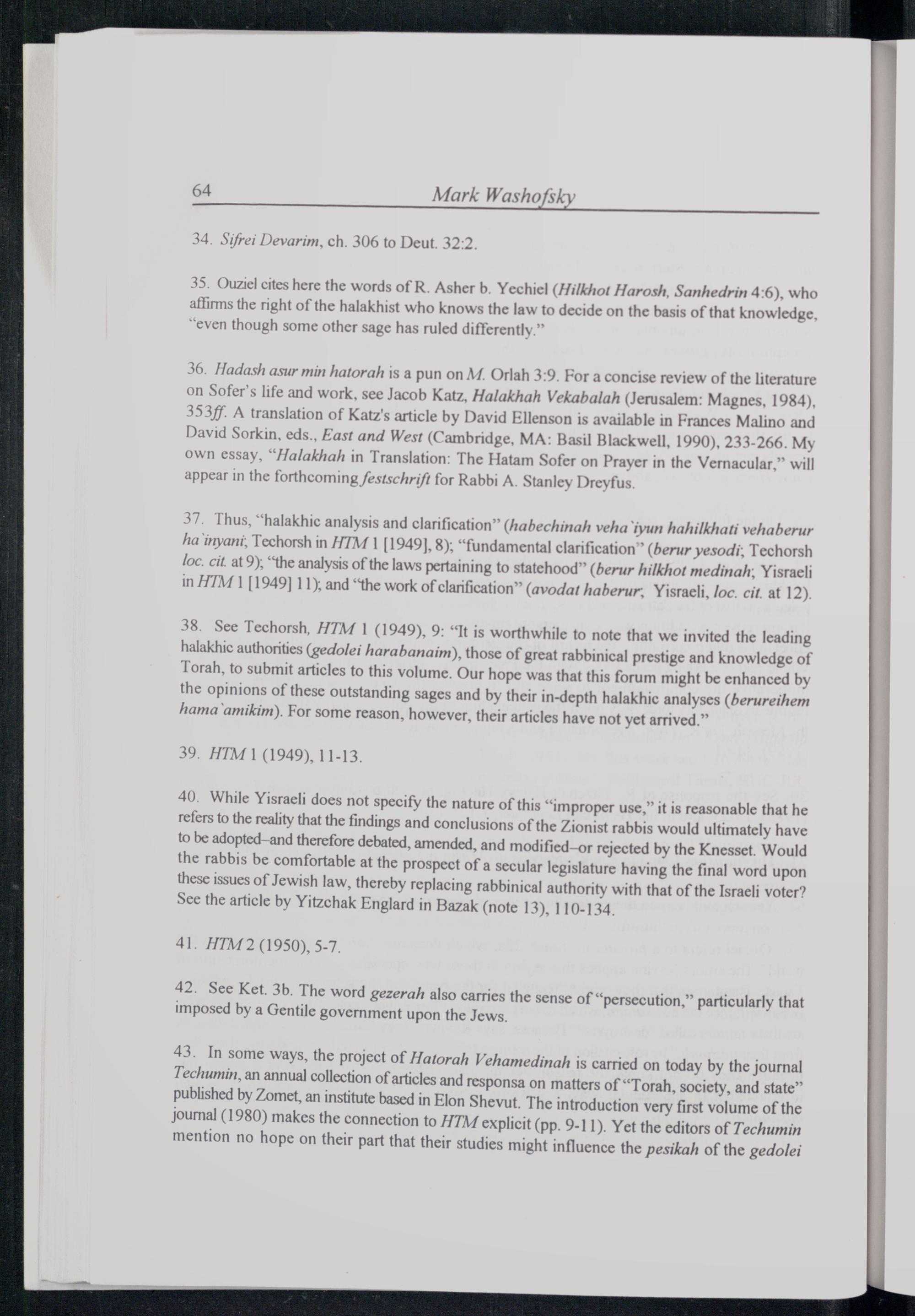 64 Mark Washofsky 34. Sifrei Devarim, ch. 306 to Deut. 32:2