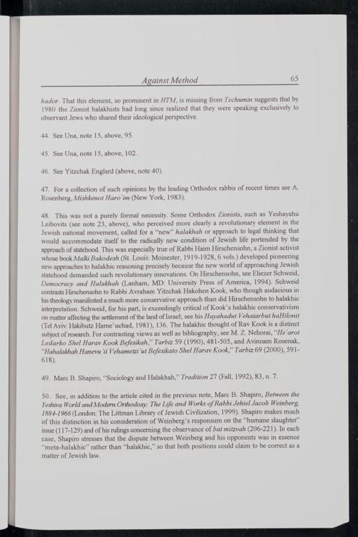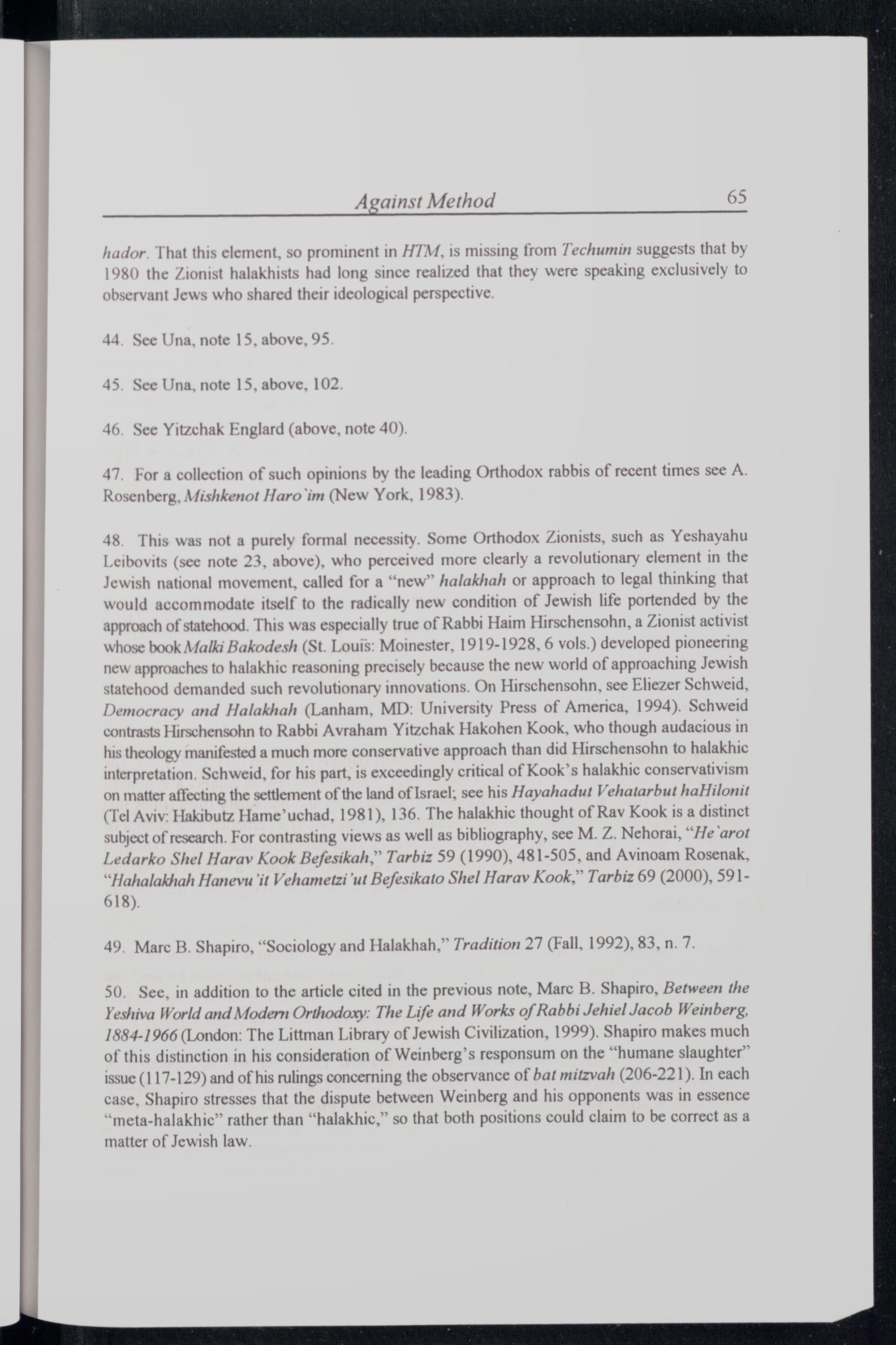 49. Mare B. Shapiro,“Sociology and Halakhah,” Tradition 27(Fall, 1992), 83, n. 7.