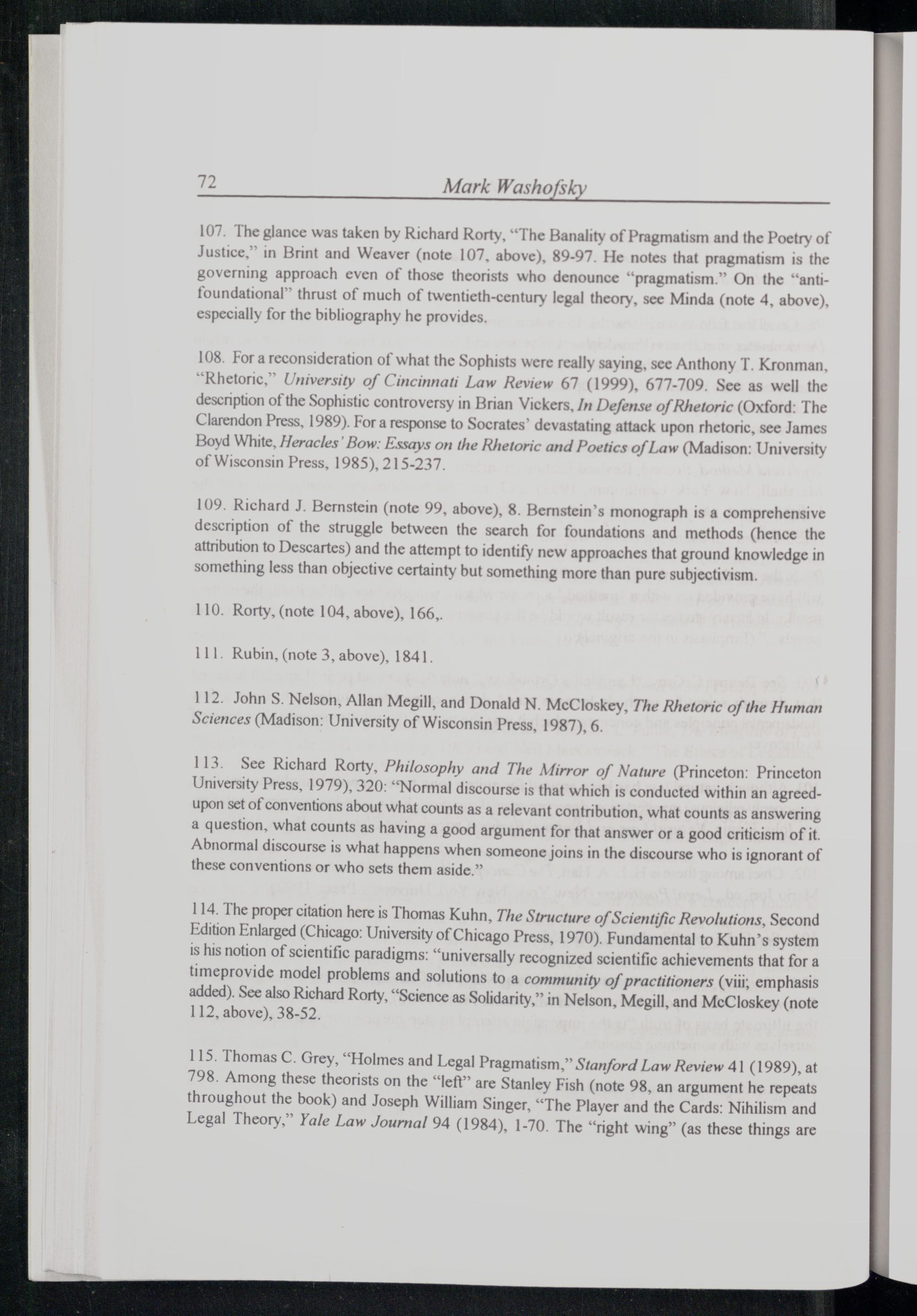 107. The glance was taken by Richard Rorty ,“The Banality of Pragmatism and the Poetry of Justice,” in Brint and Weaver(note 107, above), 89-97. He notes that pragmatism is the governing approach even of those theorists who denounce“pragmatism.” On the“antifoundational” thrust of much of twentieth-century legal theory, see Minda(note 4, above), especially for the bibliography he provides