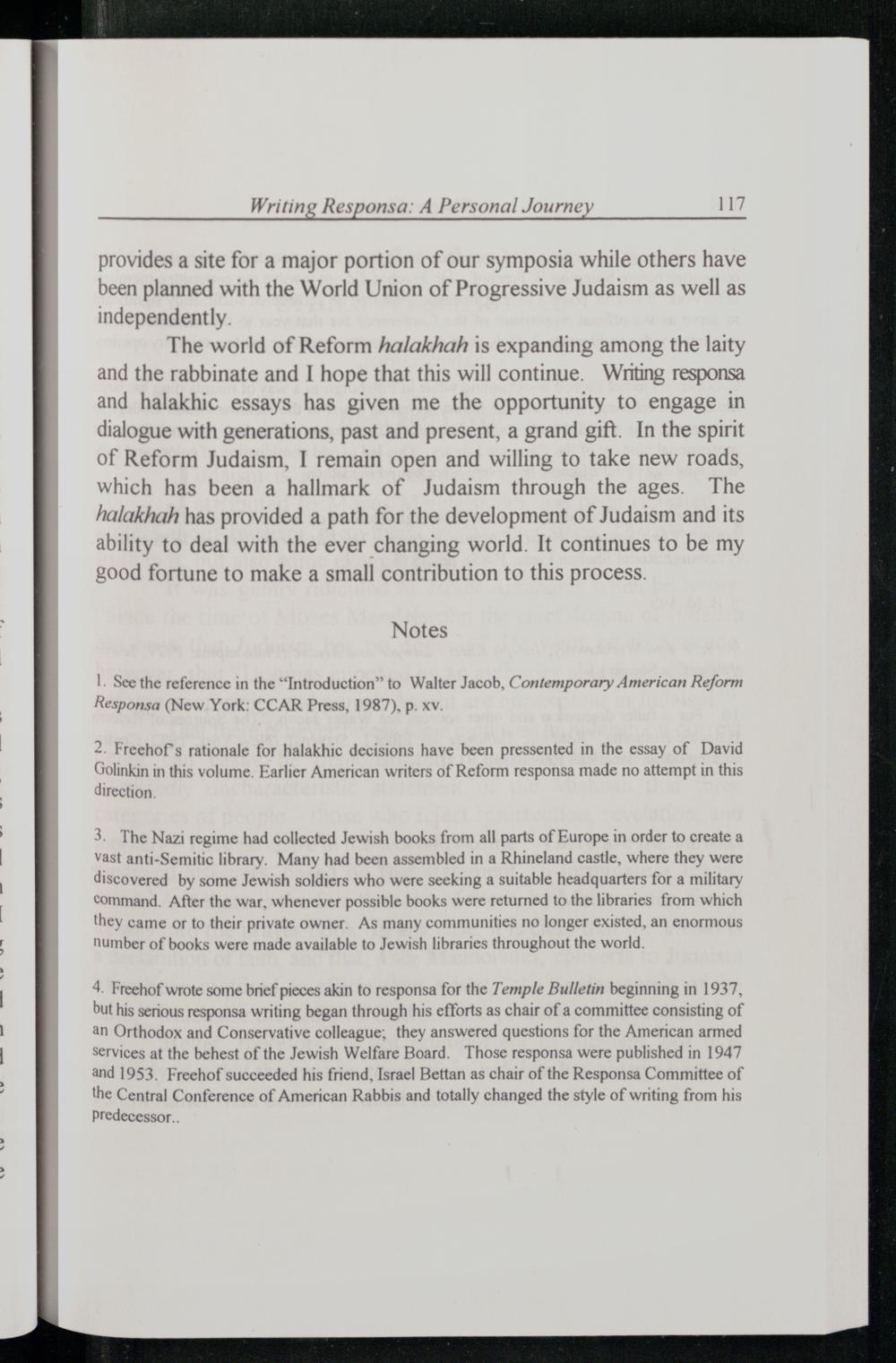 I. See the reference in the“Introduction” to Walter Jacob , Contemporary American Reform Responsa(New York : CCAR Press, 1987), p. xv.