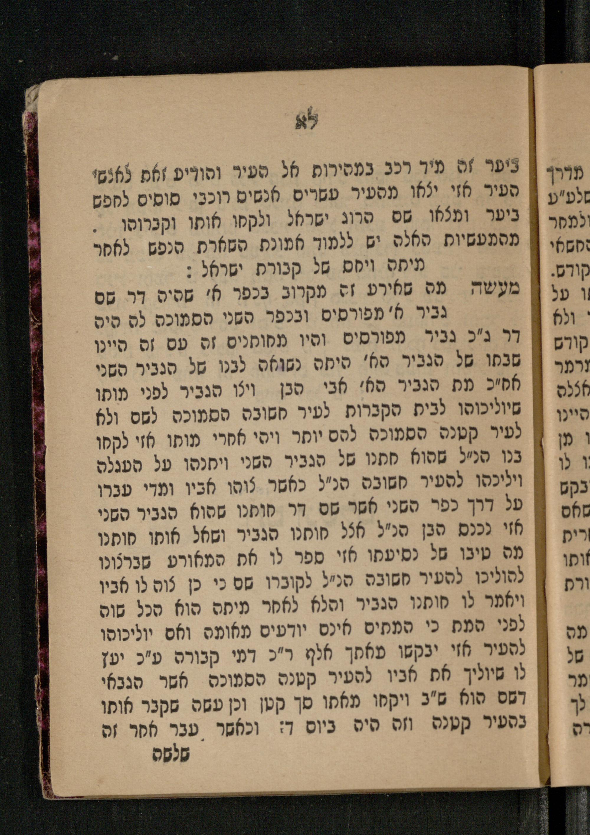ננו סג"ל סקוס קתנו סל קנביר קסני ויסנקו על העגלה ויליכקו לקטיר קטונס סנ"ל כחסר לוקו חניו ומדי עברו על דרך כפר קסני 6 סר סס דל קומלו סקול קנניל קסני חזי נכנס קכן סנ"ל לכל קוקנו קנניל וססל f ותו מותנו מה טיבו של נסיעתו 6 זי ספר לו 6 ת סמלוכע סכרכונו לסוליכן לסעיר ססונס סנ"ל לקונרו סס כי כן כוס לו לניו ויאמר לו מותנו קנניל וקלס לסקל מיתס קול קכל סוק לפני קמס כי סמקיס לינס יודעיס מסומס וסס יוליכוסו להעיר חזי ינקטו פלך חלף כ"כ דמי קבורס ע"כ יען לו שיוליך 6 ת לניו לסעיר קטנס ססמוכס 6 סר קננסי רסס קול ס" 3 ויקקו מ f תו סך קטן וכן עסק סקנר חותו נקעיר קטנס וזס קיק כיוס ד: וכ f סר עבר חקר זה פלפס