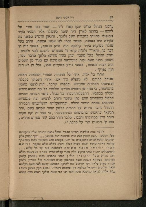 28 חיי אנשי השם ל ביל ילאר וקא> רקוק ימח טיק לקי ח"י ל עולה ובישקי אית בי| ,רבנו הגדול מו"ה יוסף קארו"ל-- יאמר בסן מורו של לוצטו-- בחוצה לארץ היה עומר כשנגלה אליו המגיר בעיר ניקופולי בהיותו בחבורה יושב ולומד, והגאון הרמ"ע מפאנו פה העירה היה באמנה, כאשר ספרו לנו אנשי אמונה, והרב בעל מגלה עמוקות בעיר קראקא היה איתן מושבו, כאשר רוח ה' דבר בו, והאר"י זלה"ה קראו ה' ממצרים להבנם לפני ולפנים, והרב הגדול בעל מעבר יבוק בעיר מודינא מלאך מרבר עמו, והגאון רבנו משה זכות בויניציאה ומנטובה עם מגיד מן השמים היה דבורו ונאומו, כאשר נורע בשערים שמו, וכל זה לא היה חזון נפרץ".
