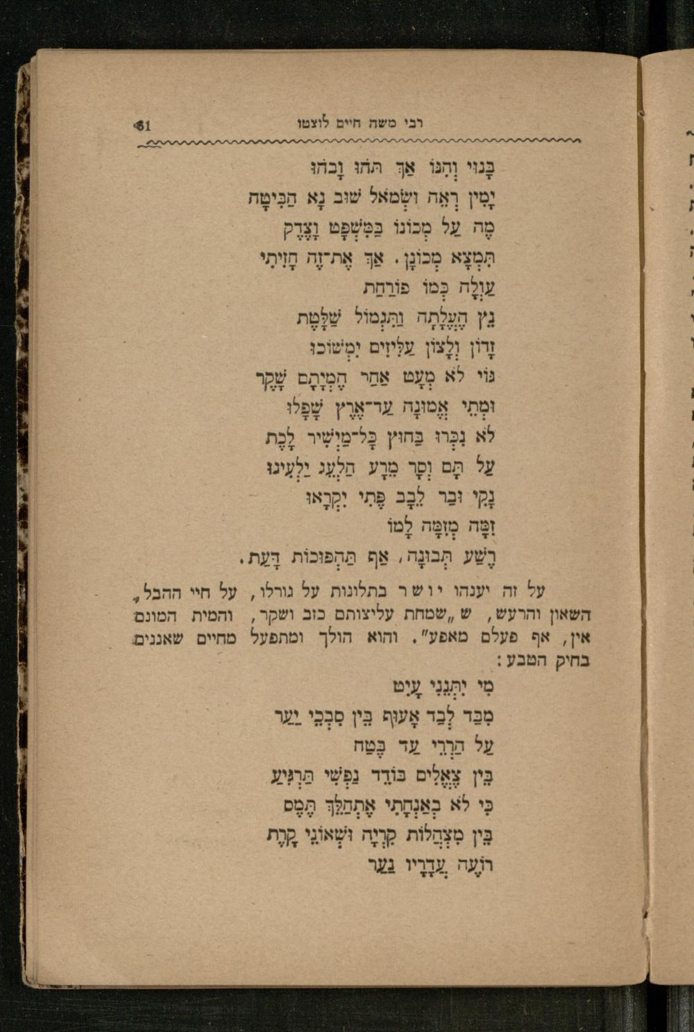 על זה יענהו יושר בתלונות על גורלו, על חיי ההבל, השאון והרעש, ששמחת עליצותם כזב ושקר, והמית המונם אין, אף פעלם מאפע". והוא הולך ומתפעל מחיים שאננים