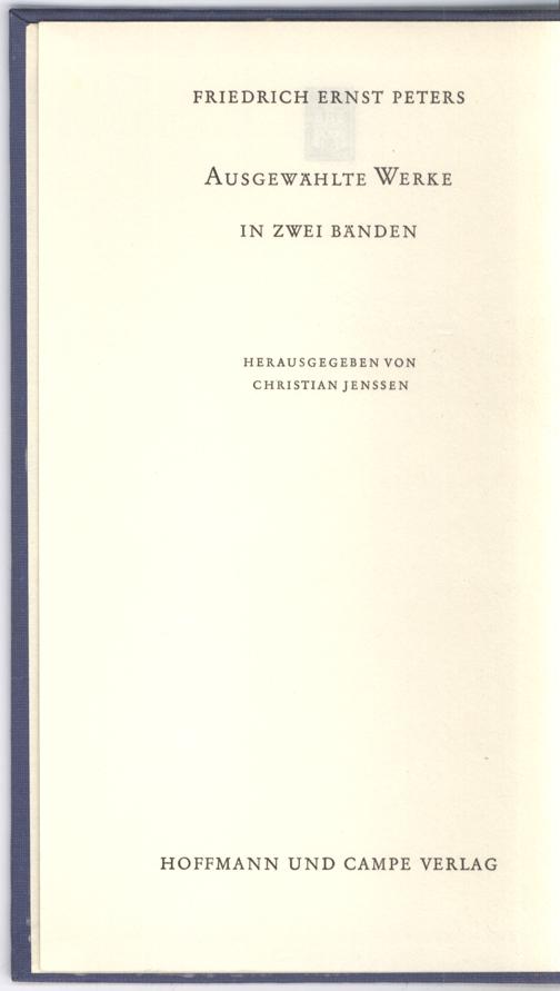 FRIEDRICH ERNST PETERS AUSGEWÄHLTE WERKE IN ZWEI BANDEN HERAUSGEGEBEN VON CHRISTIAN JENSSEN HOFFMANN UND CAMPE VERLAG