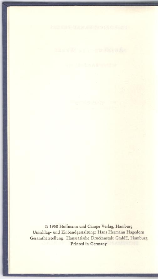 © 1958 Hoffmann und Campe Verlag, Hamburg Umschlag- und Einbandgestaltung: Hans Hermann Hagedorn Gesamtherstellung: Hanseatische Druckanstalt GmbH, Hamburg Printed in Germany